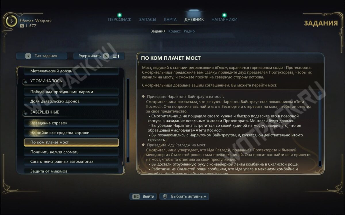 Согласитесь сотрудничать в обмен на ценную информацию — так получите поручение «Сага о неисправных автоматонах». Выполните свою часть сделки, взамен получив указ «О мобилизации» (пригодится для мирного проникновения на станцию), а также сведения о тайном проходе, ведущем в северную зону острова.