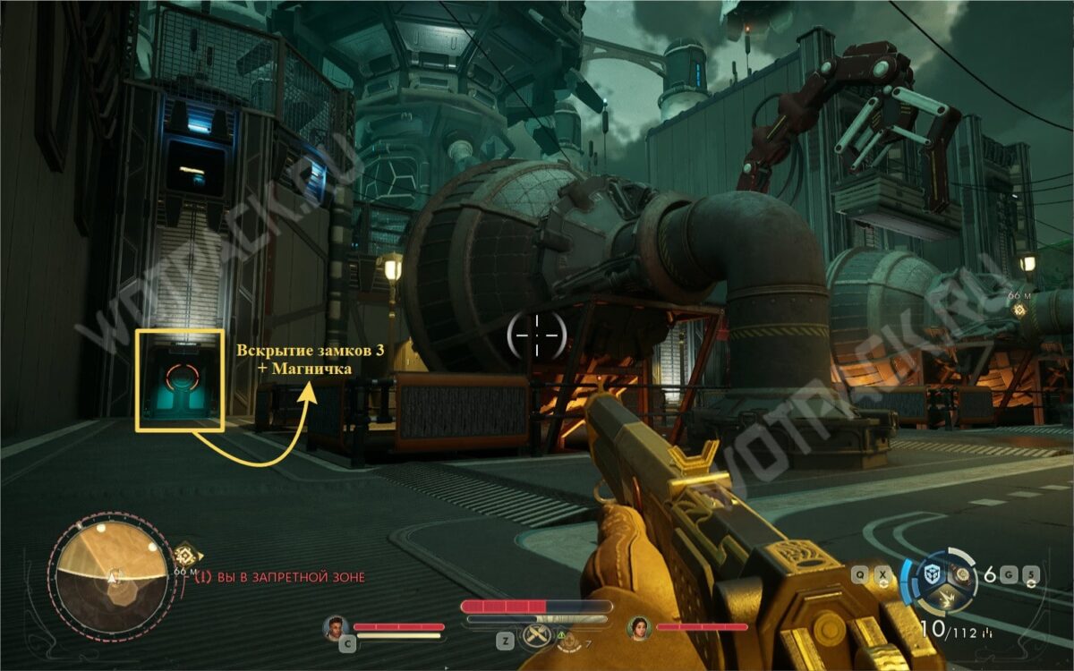 С помощью этого гаджета (активация на клавишу «Q») сможете пробраться через заражённую зону, ведущую прямиком к станции.