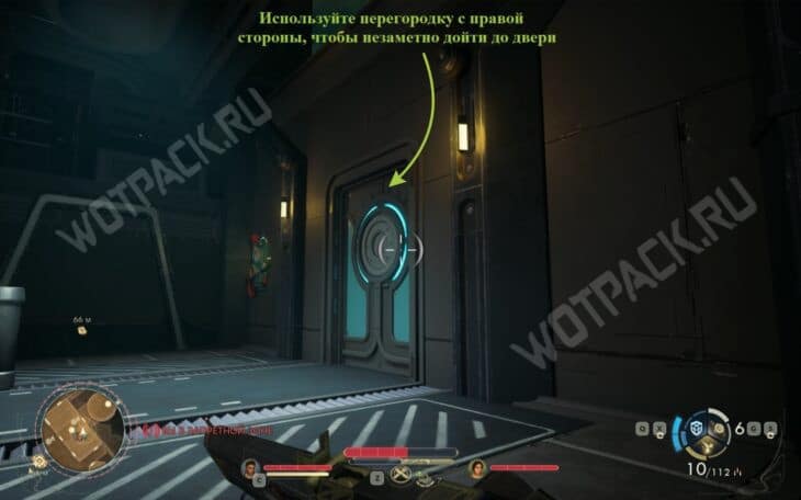 Для проникновения в режиме незаметности начните путь через проход, находящийся в противоположной стороне от часового.