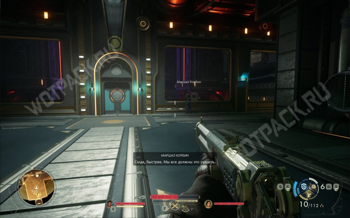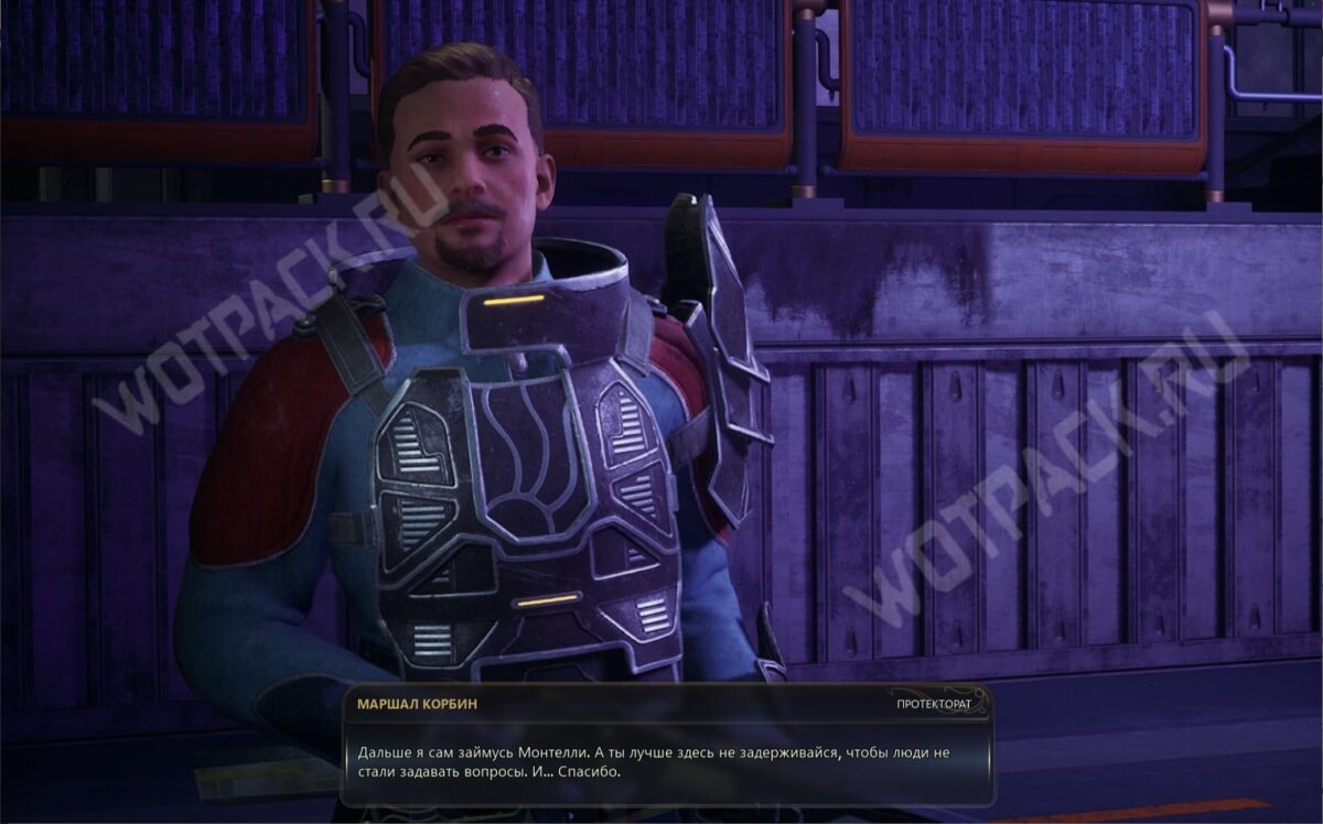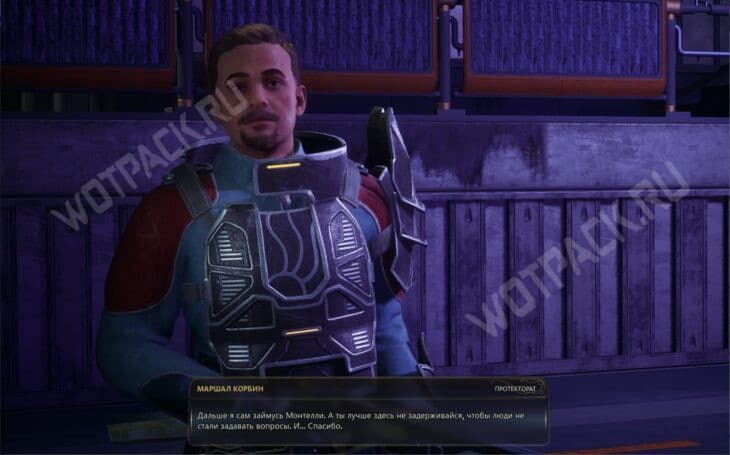Первым, кого встретите внутри, окажется маршал Корбин — повзрослевший курсант, который десять лет назад служил на «Горизонте». Если ранее успешно завершили побочку «Дилемма курсанта», мужчина будет настроен дружелюбно.