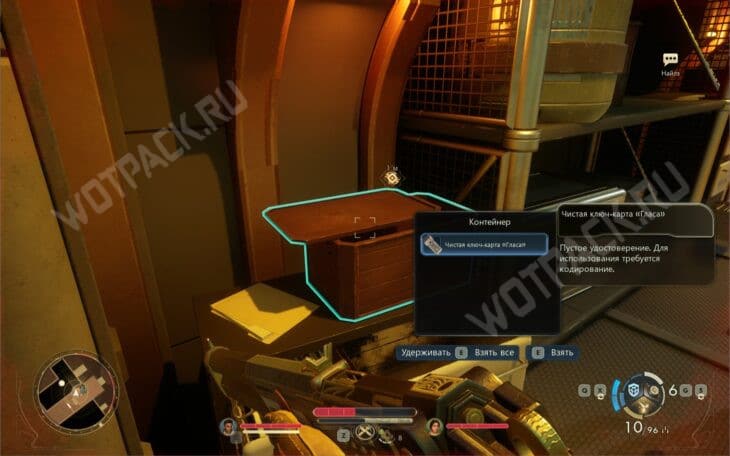 Контейнер, где хранится чистая ключ-карта «Гласа», расположен в секторе слева.
