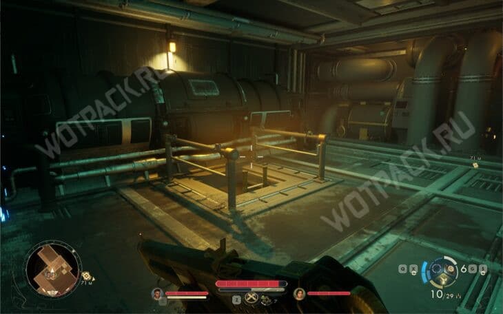 Вернитесь в помещение, где проходило основное сражение, и пройдите в техническую комнату. На полу заметите люк.