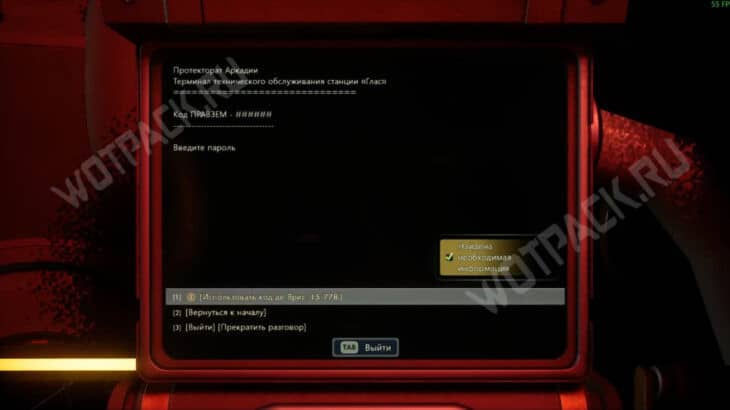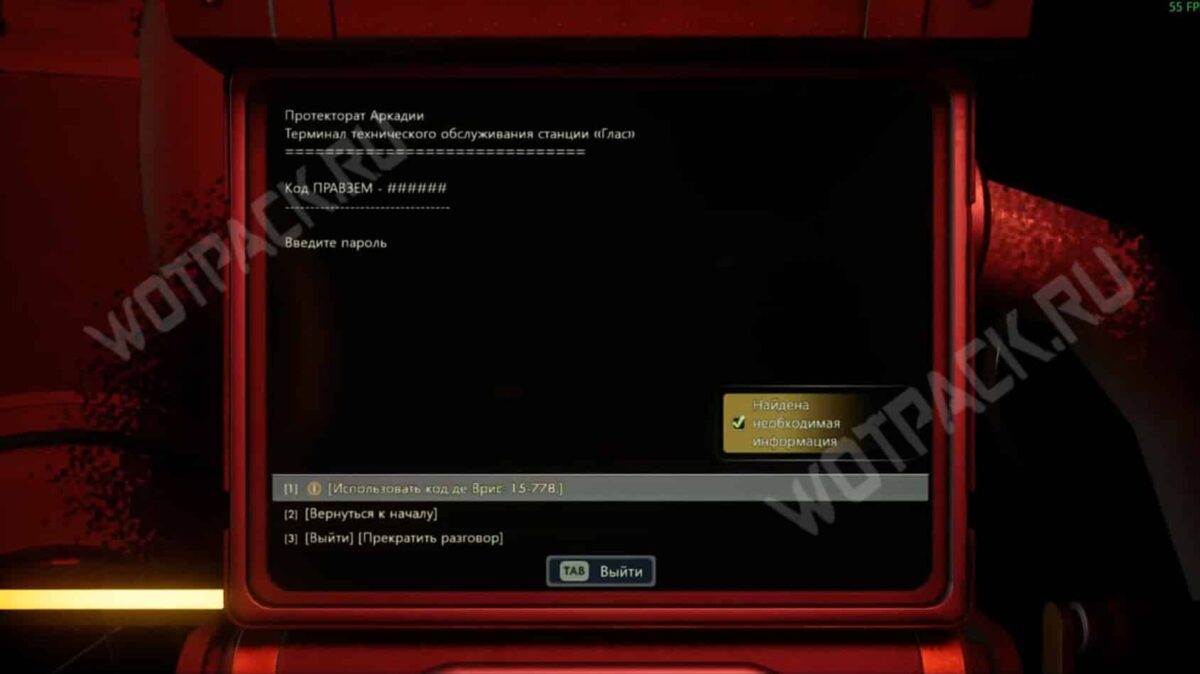 В диалоге выберите: «Вы нашли ее? У вас получилось поговорить?», чтобы узнать шифр агента и позже с его помощью разблокировать устройство на станции.
