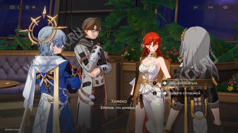Узнайте, какого мнения придерживается каждый из Безымянных, обсудив произошедшее с Дань Хэном и Март 7, а также Химеко, Вельтом и Пом-Пом. В процессе столкнётесь с выбором: