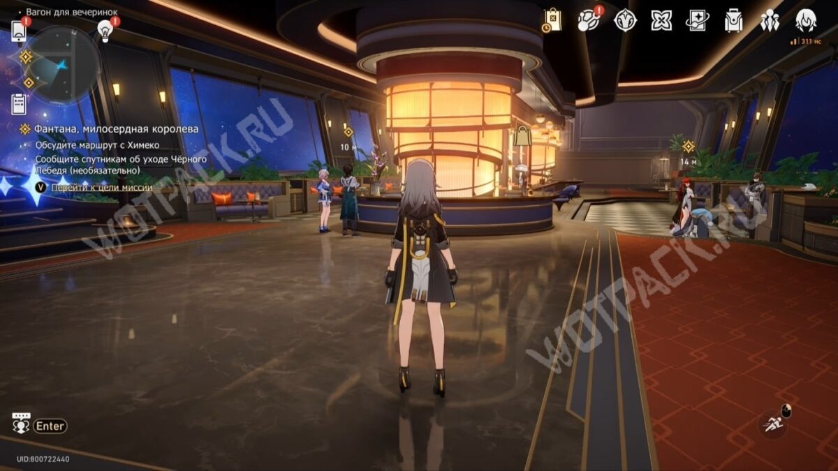 Согласно старой традиции, пришло время обсудить следующую остановку «Звёздного экспресса». Прочтите сообщение от экипажа в чате «Семьи» и посетите вагон для вечеринок, чтобы поприветствовать неожиданного гостя в лице топ-менеджера КММ Яшмы. Девушка предложит Безымянным отправиться в Звездоград, откуда они смогут руководить альянсом против Разрушения.