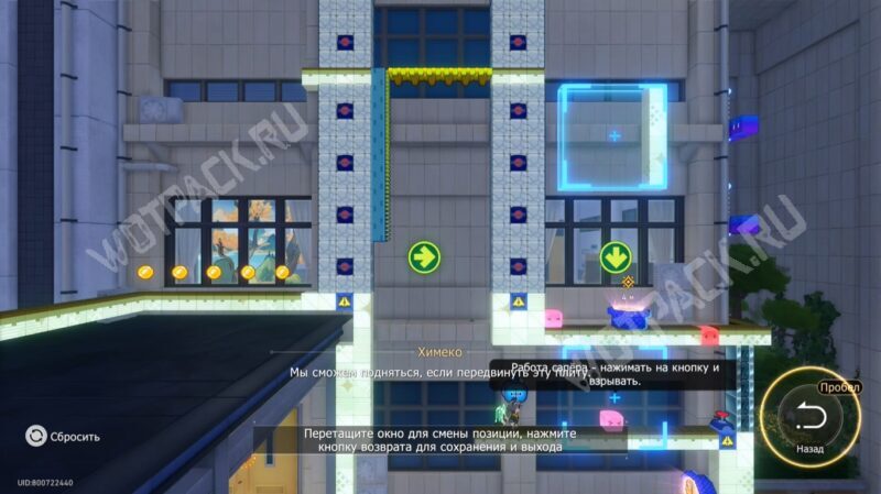 Встаньте над пиксоном. Подпрыгнув три раза, зацепитесь за лестницу, — это позволит изучить верхний ярус первой комнаты, также получите Безымянный эфемер: Звезда здоровья.