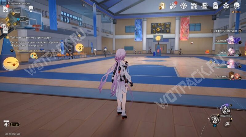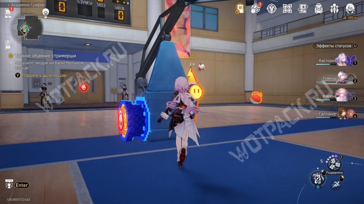 В спортзале взаимодействуйте с эмодзи: некоторые из них будут настроены дружелюбно, другие начнут драку. «Смайлик», возвышающийся над баскетбольным кольцом, вынудит посоревноваться на территории «Двухмерного прыжка! Сложность 4».
