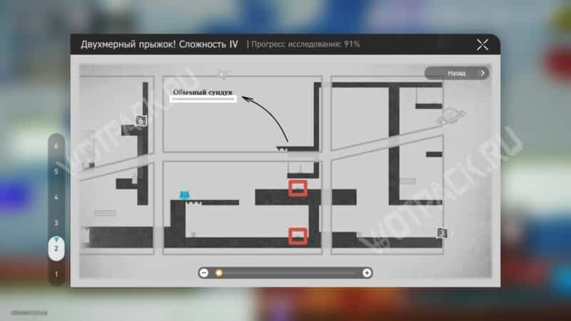 На следующем повороте можете изучить верхний уровень зоны. Если пройдёте испытание с красными исчезающими блоками, откроете тайник с обычной сокровищницей.