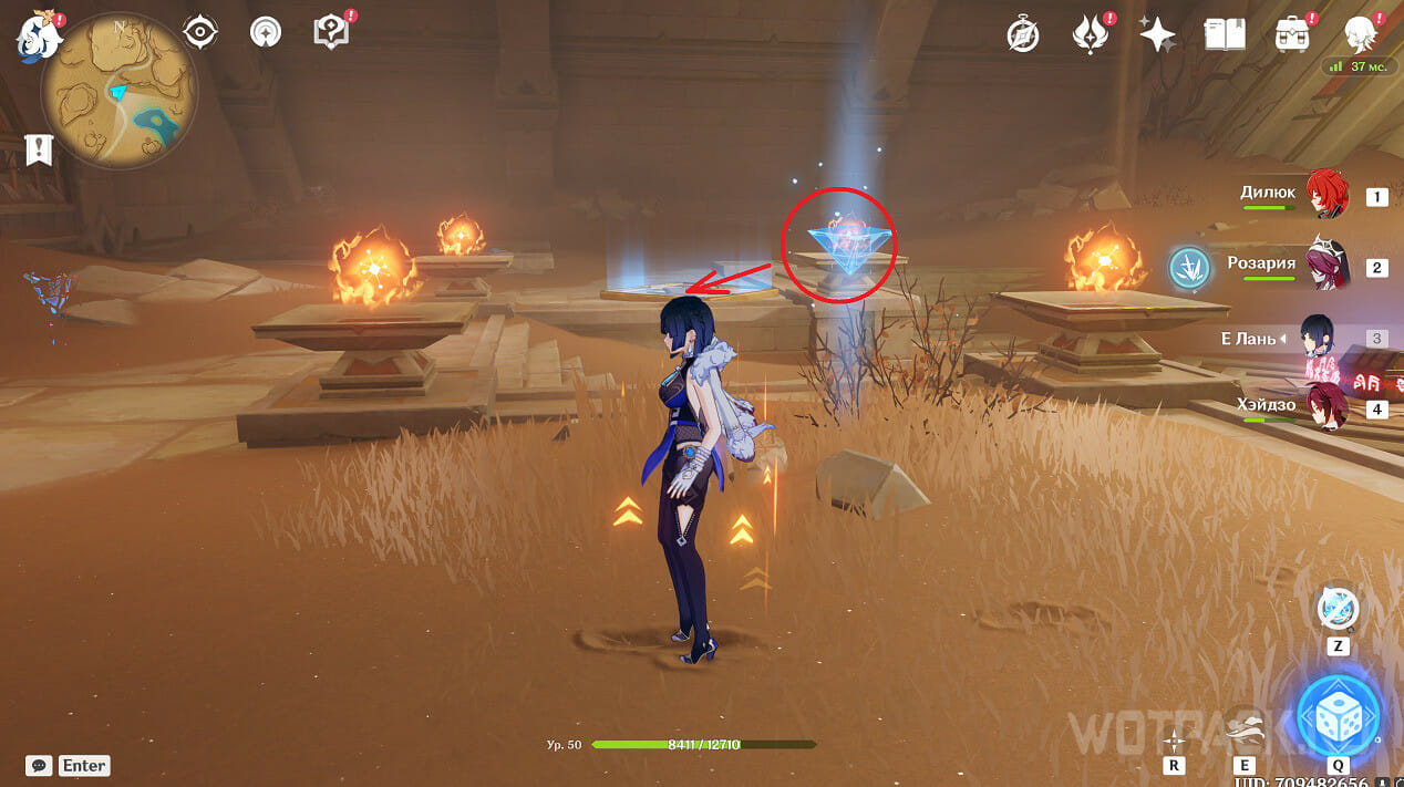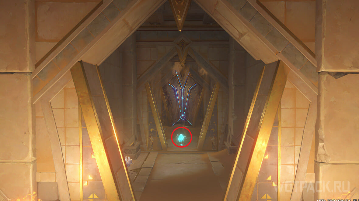 Следуя за искрой, попадете в комнату с Первозданным обелиском (желтая 2 на карте).
