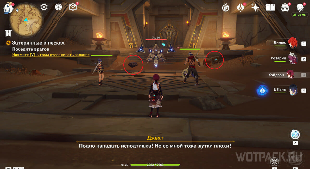 Первая легкая загадка находится в комнате у входа. В ней окажетесь во время исследования в рамках квеста Затерянные в песках. После того как одолеете первозданную конструкцию, подойдите к платформе, на которой стоит факел. Слева есть сундук, засыпанный песком: примените рассеивание Анемо персонажем (подойдет даже Путешественник), чтобы получить доступ к нему. У факела по соседству лежит Скрижаль: овечья голова.