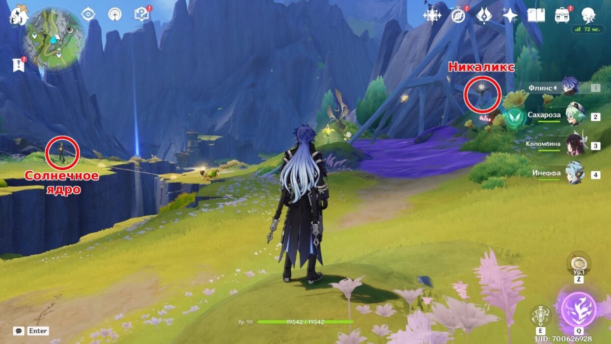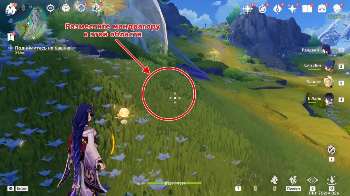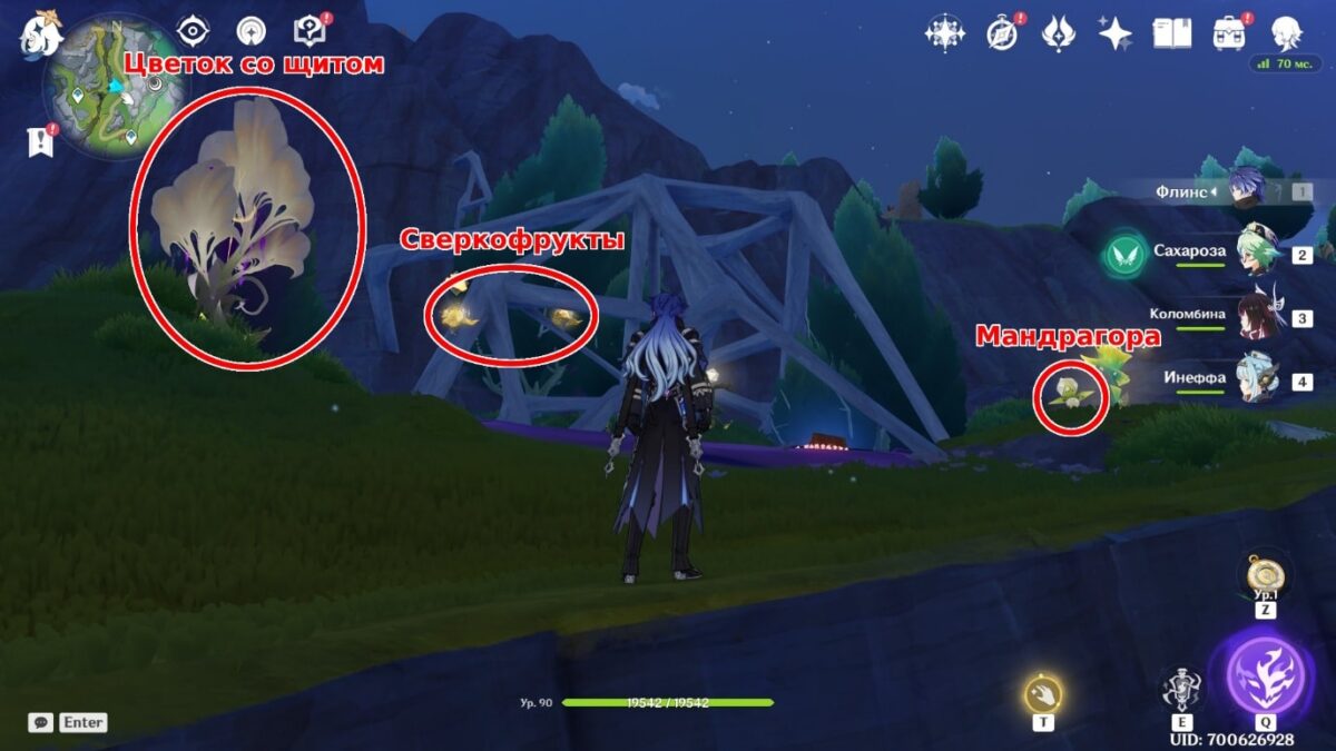 В первую очередь нужно активировать большой цветок духов со щитом и мандрагору, сидящую рядом со шпилецветом — они послужат дополнительными узлами. Куувяки для их зарядки можно получить из растущих поблизости сверкофруктов: