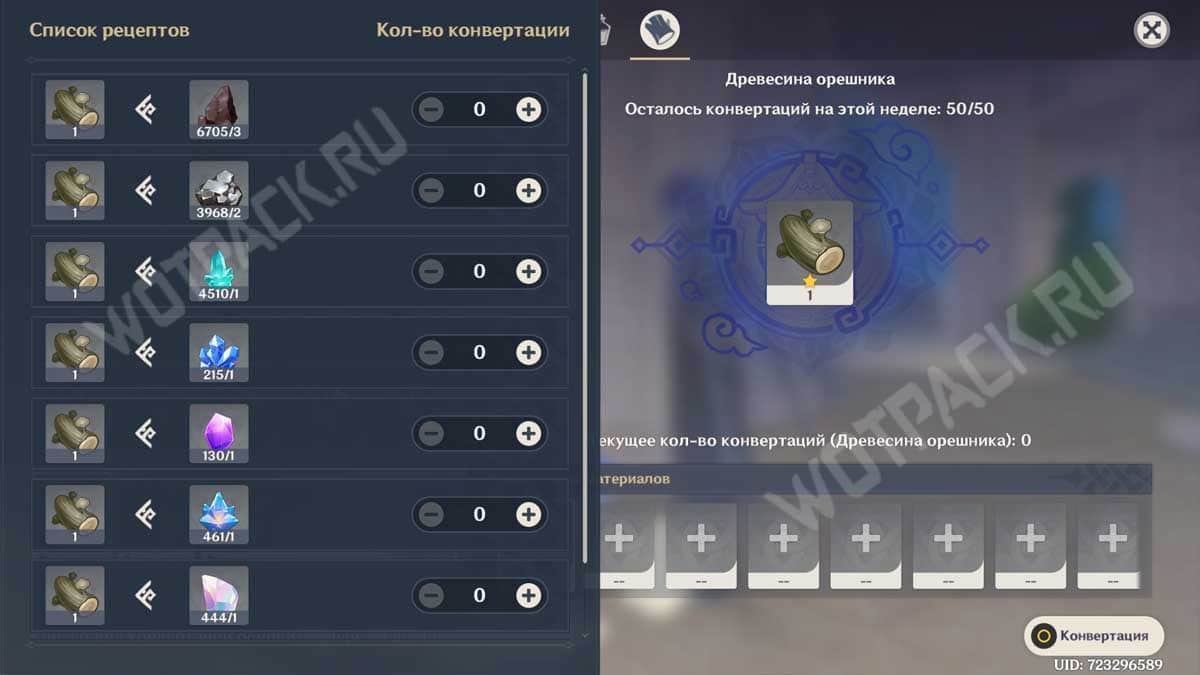 Из древесины орешника можно создать такие предметы интерьера в Геншин Импакт как: