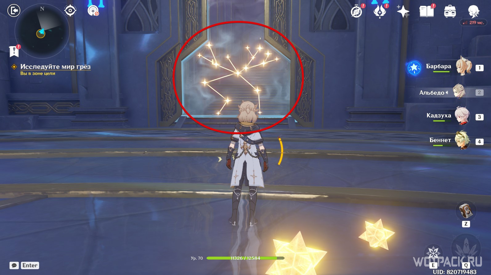 Если все сделано правильно, над проемом загорится созвездие, а барьер исчезнет. Пройдите в открывшийся проход.