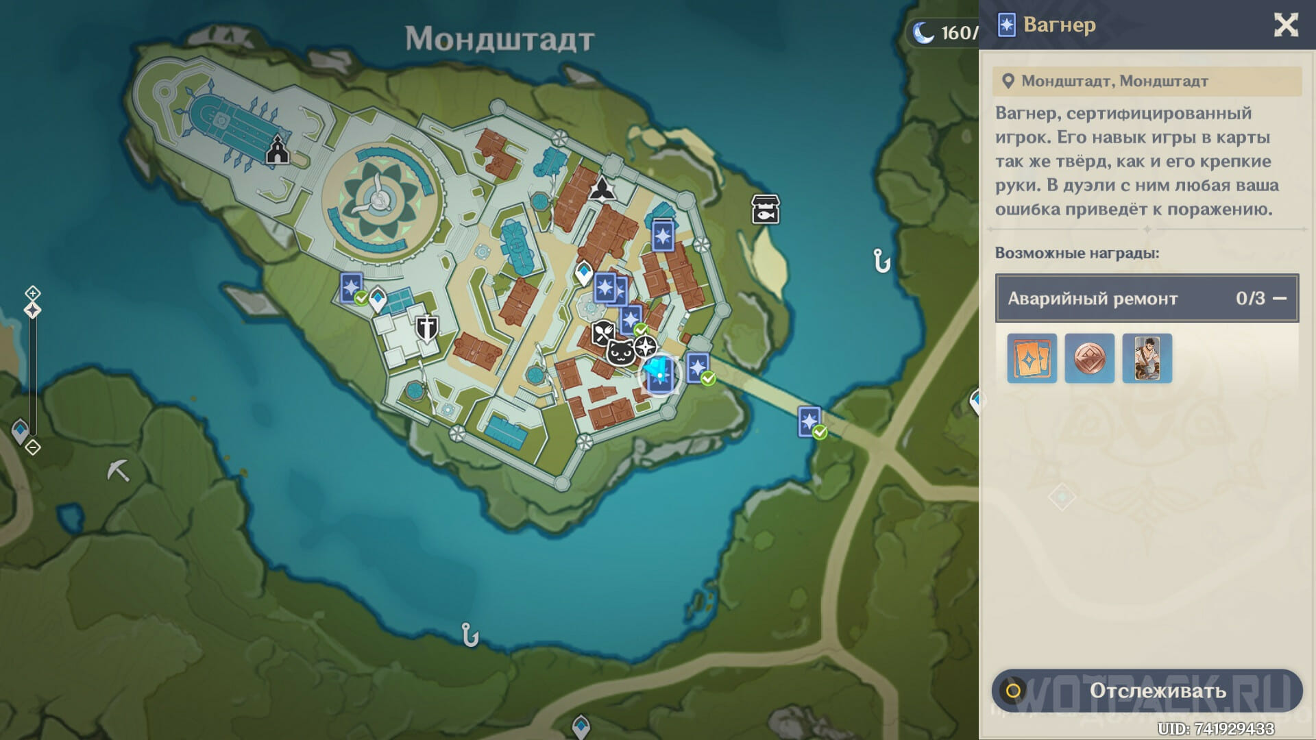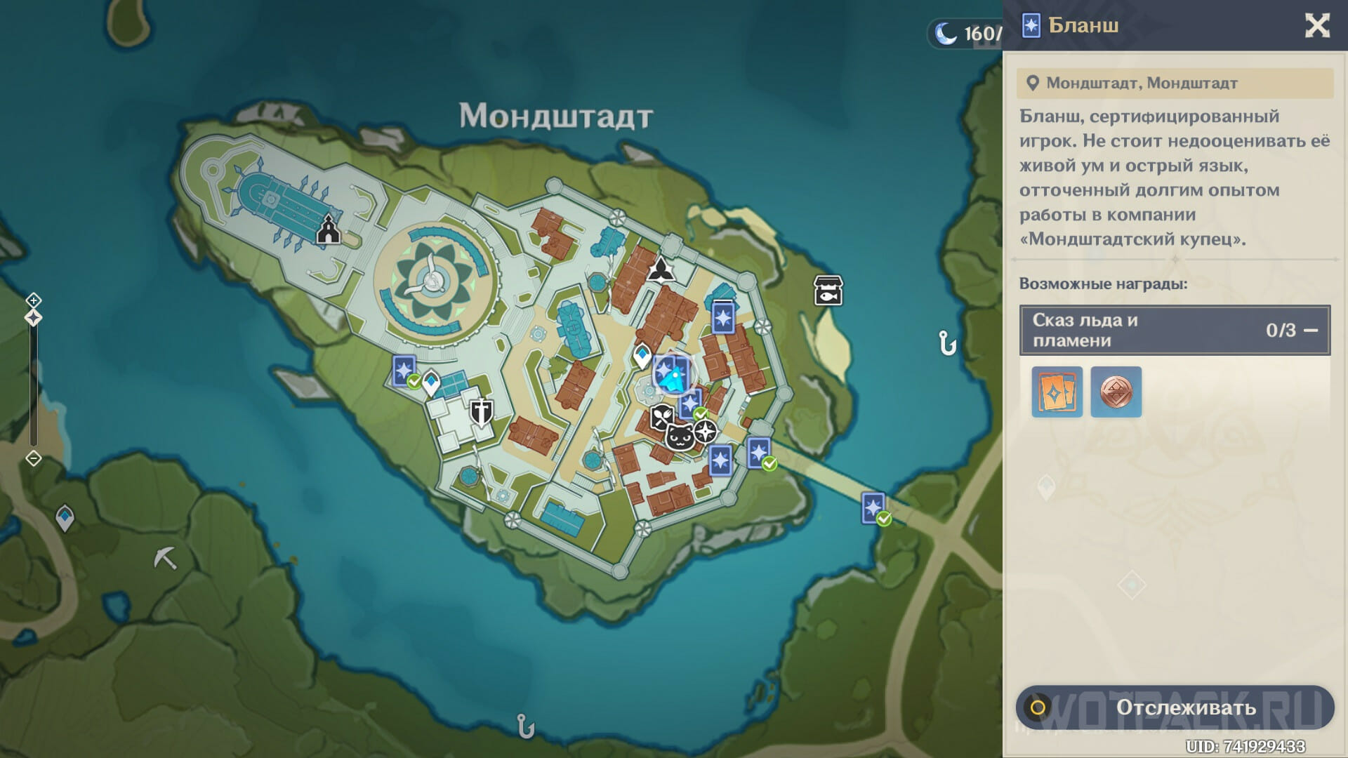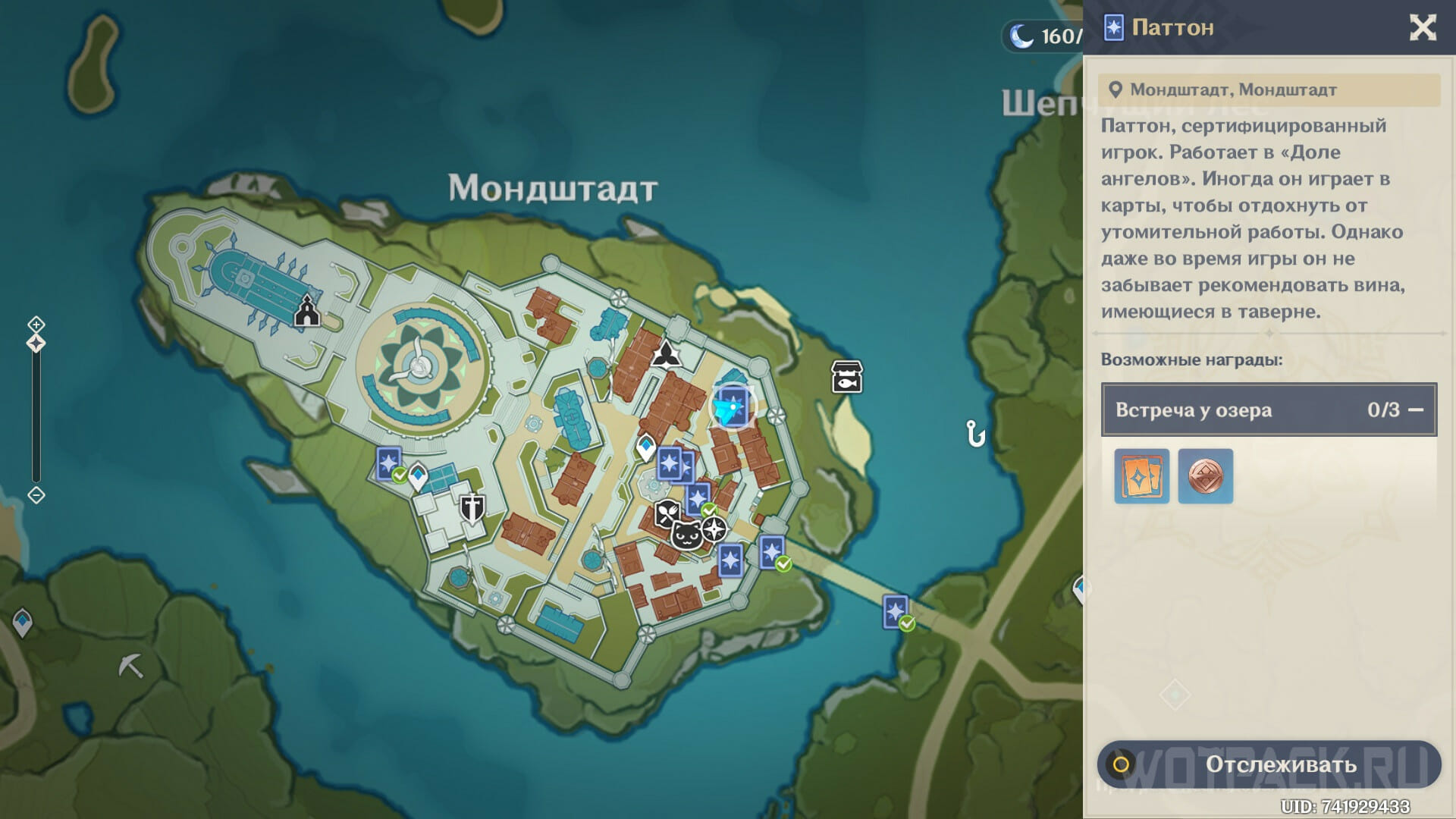 - Локация: город Мондштадт, главный вход в таверну “Доля ангелов”