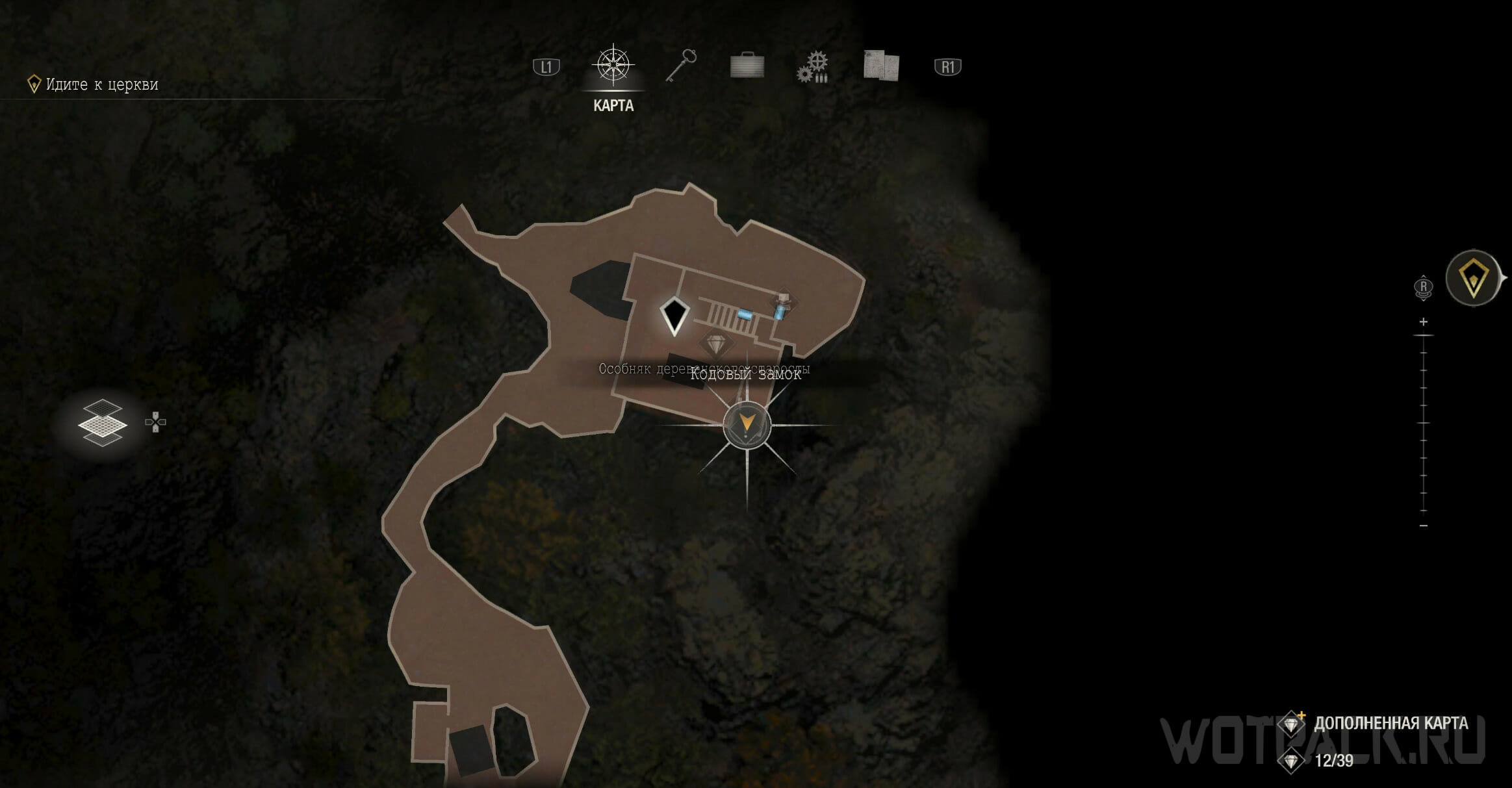 Впервые попасть сюда удастся во второй главе, чтобы проникнуть внутрь, обойдите здание слева, минуйте множество капканов и зайдите с черного входа. Для решения головоломки потребуется шкаф на первом этаже и дверь с углублением на втором.