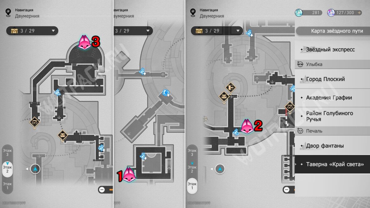 Пройдите три испытания «Двухмерный поворот» в Таверне Край света и окажите помощь розовой лисе в Хонкай: Стар Рейл, чтобы заработать: