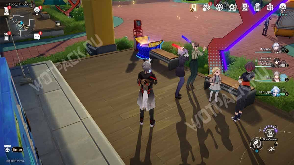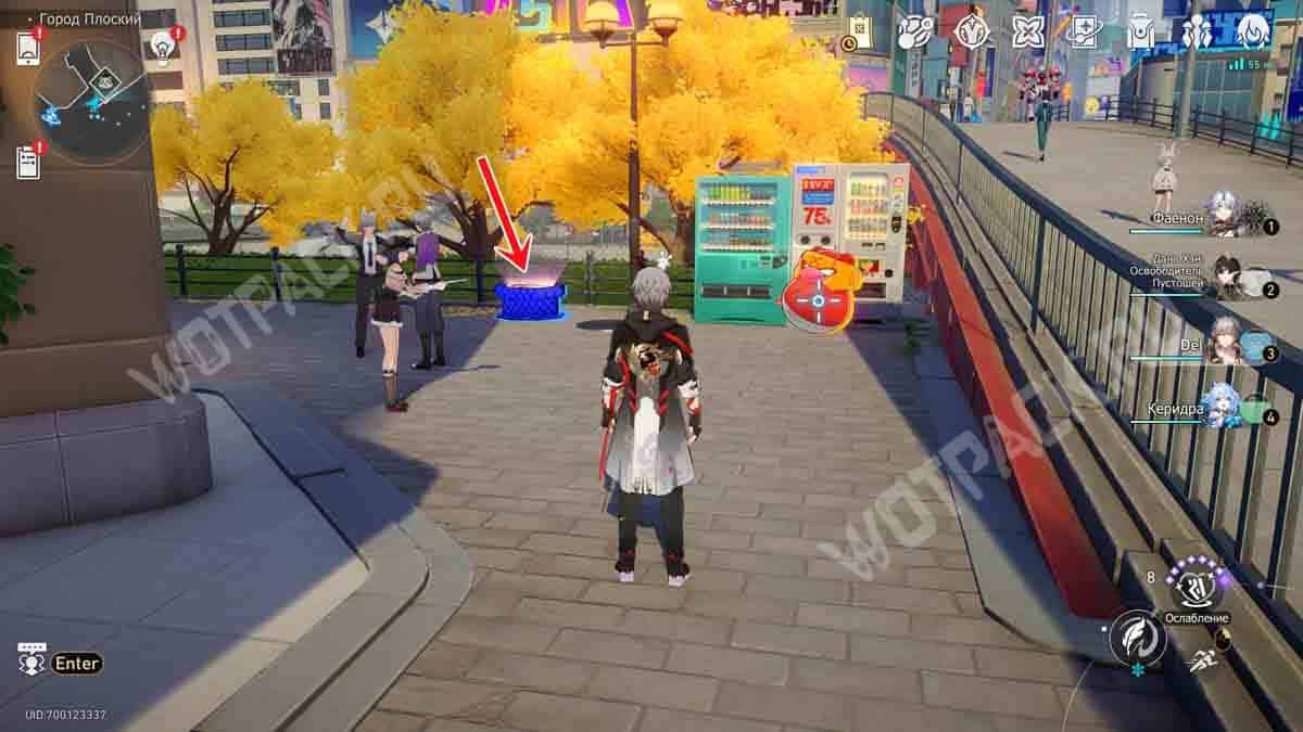 Сверните на восточную тропу с аллеей, выйдя от телепорта «@Вход». Проход в «Двухмерный прыжок» расположился рядом с автоматами с едой.