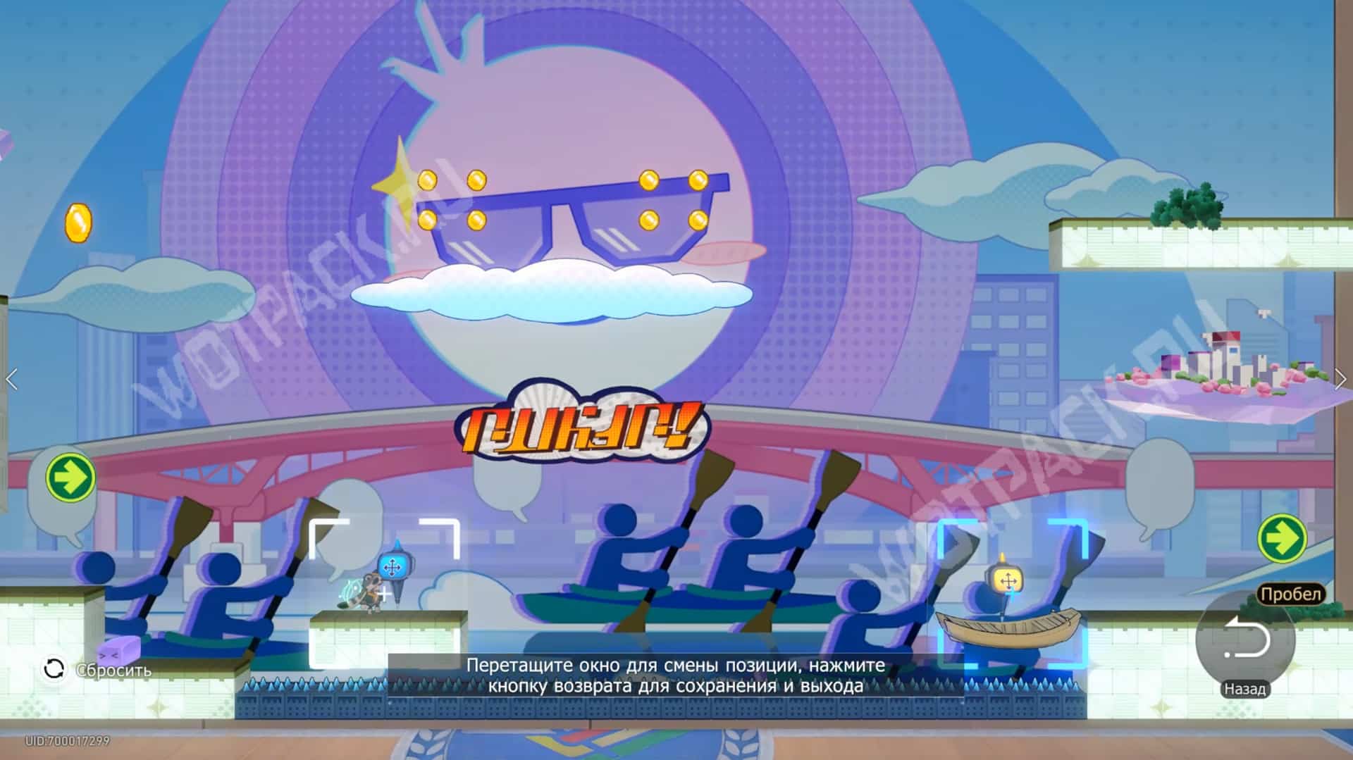 В процессе решения испытаний не забывайте об особенностях платформ и используйте их для своей выгоды. В этих 2D-мирах есть активности «Эстетическое окно» на передвижение блоков, «Мелочи Двумернии» на скорость и шерстяк.