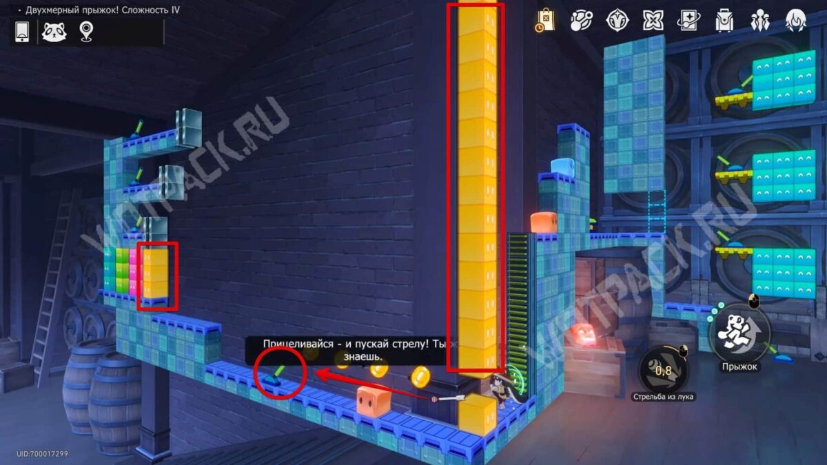 | Кручёная стрела | Сделайте так, чтобы выпущенная стрела изменила траекторию полёта в Двухмерном прыжке. |