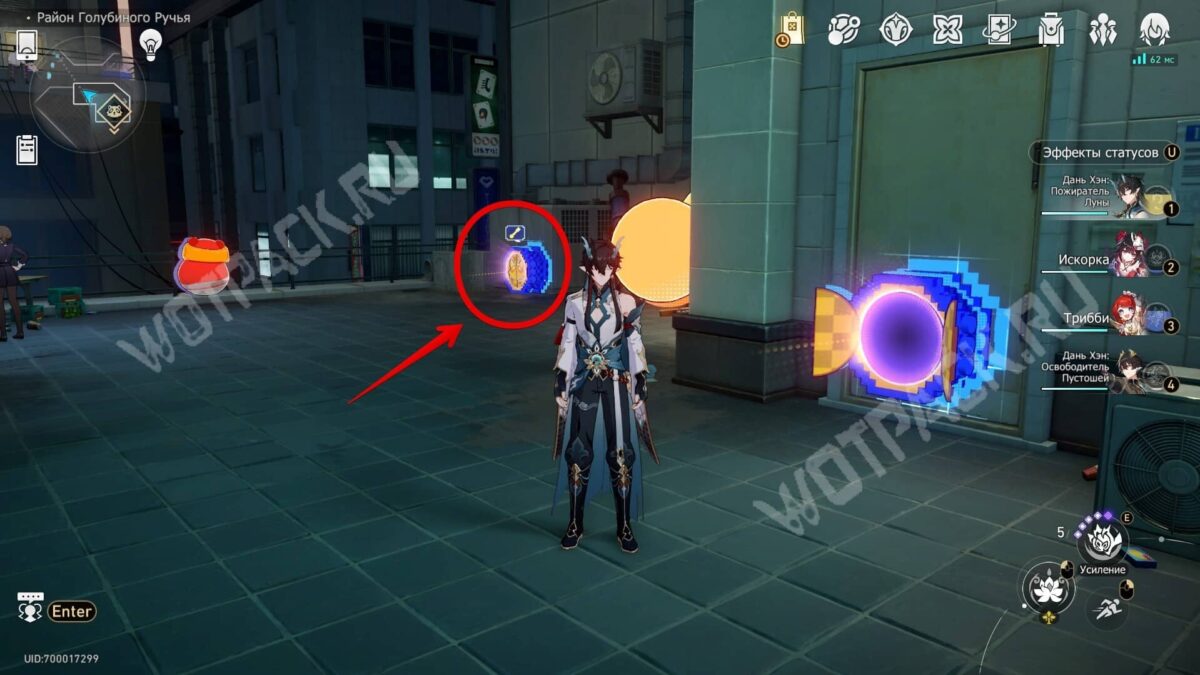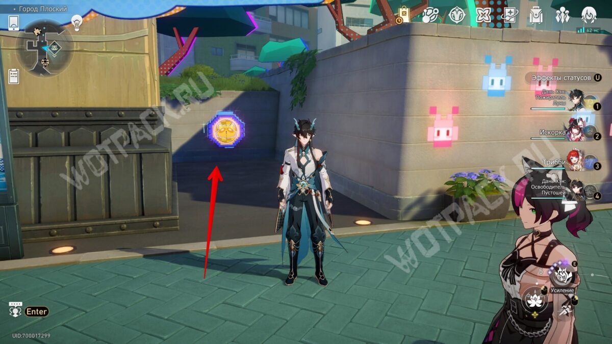 От пространственного якоря «Проспект Голубиного Ручья» следуйте к крутящейся вывеске с монетами и зайдите за угол, чтобы начать этот уровень.