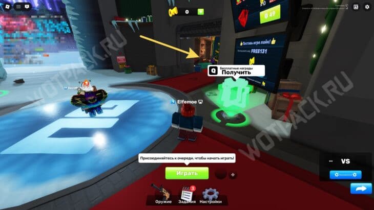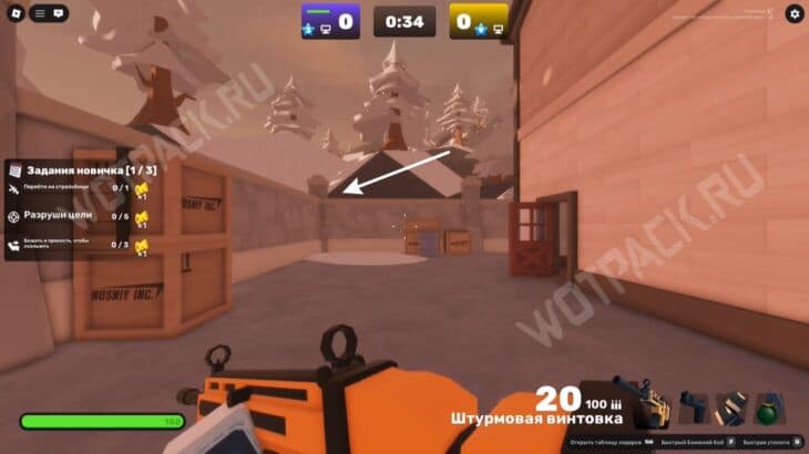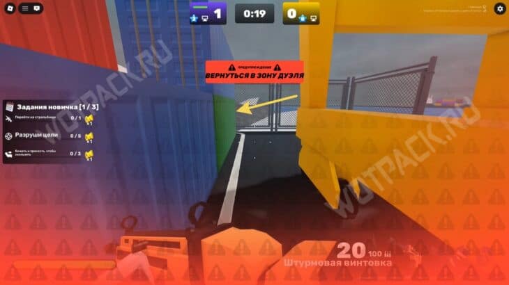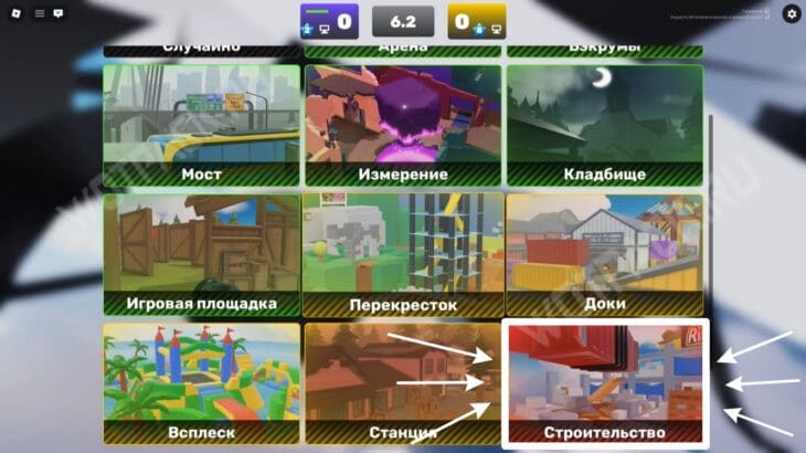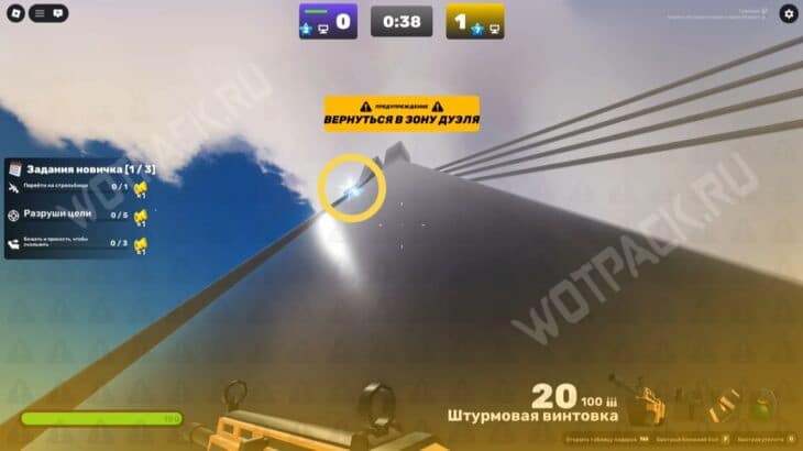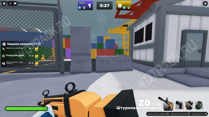 Запустите карту «Доки» (Docks) и подойдите к краю дуэльной зоны (бело-серое здание). Переключите оружие на кулаки и бегите к жёлтому строительному крану.