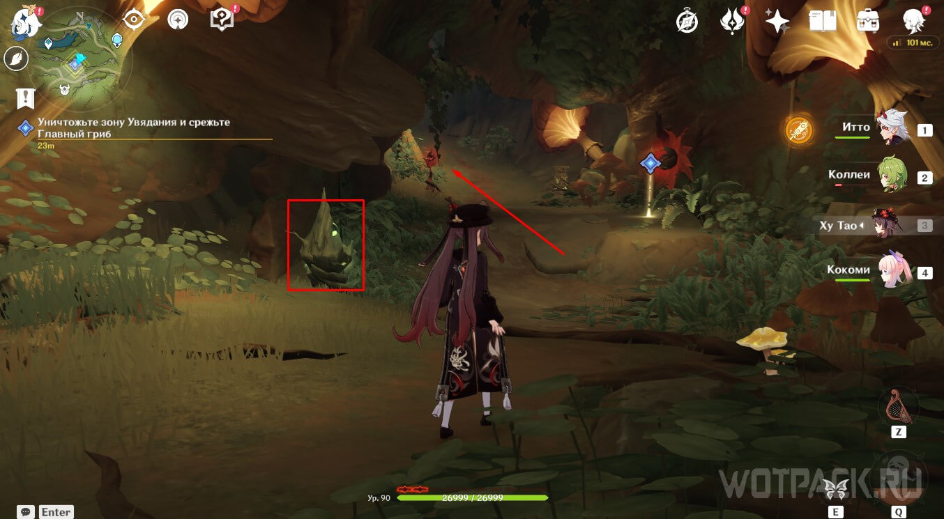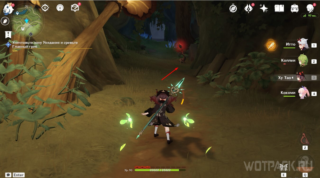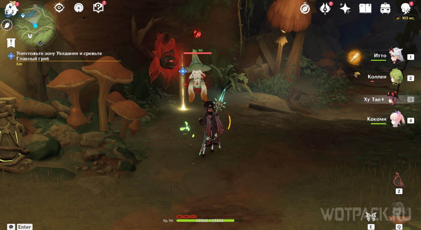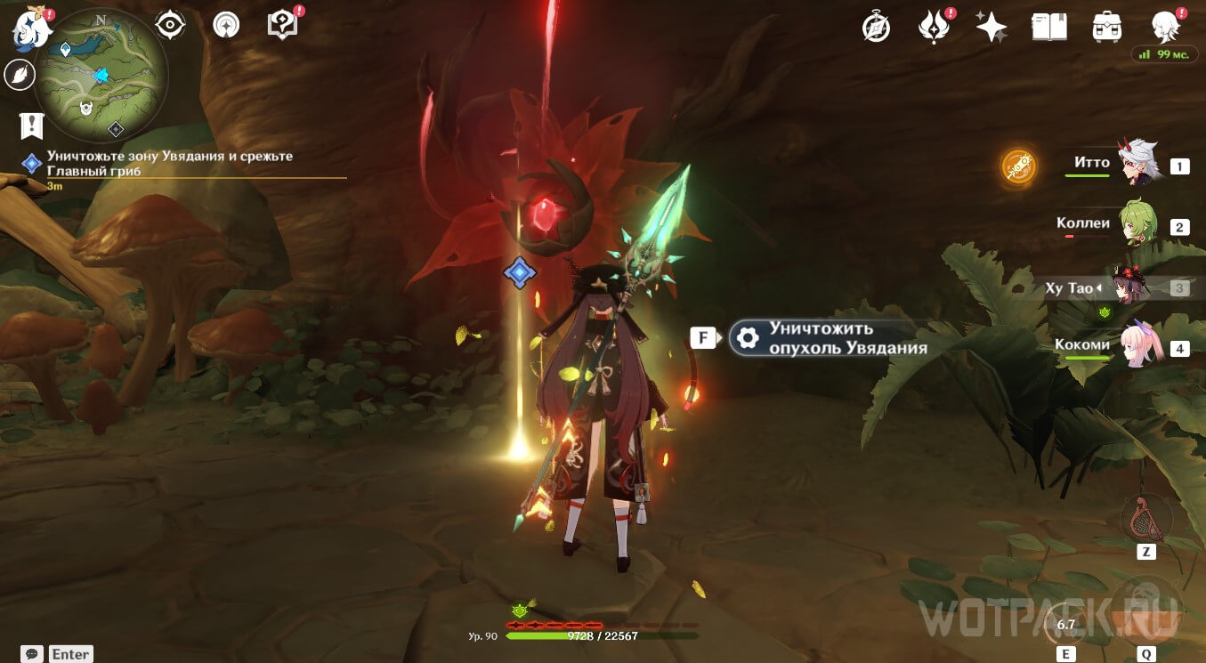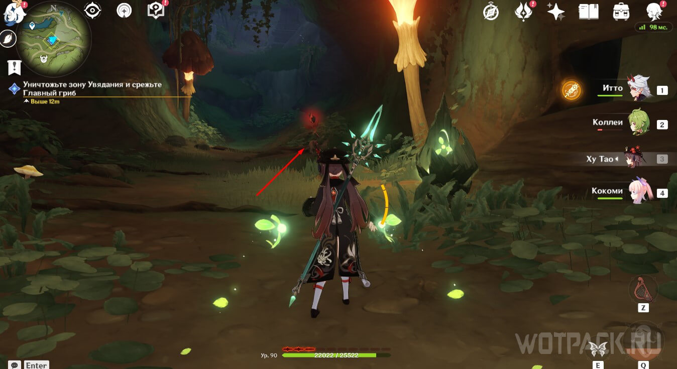 Уничтожьте зону Увядания и срежьте Главный гриб