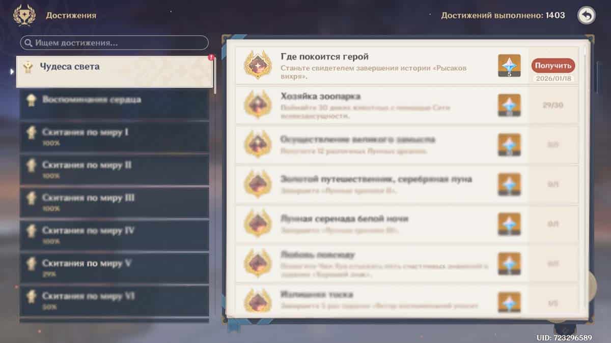 Станьте свидетелем завершения истории «Рысаков вихря», чтобы получить ачивку «Где покоится герой» и забрать 5 камней истока из раздела «Чудеса света».