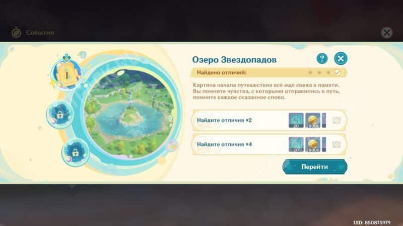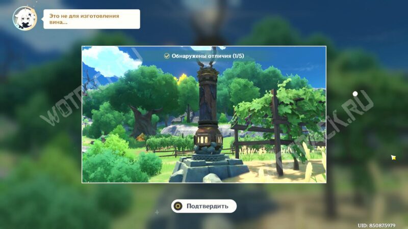 Начальный этап исследования интерактивного пузыря проходит на территории возле первой в сюжете статуи Семи Архонтов. Область исследования небольшая, а большинство помех заметны издалека. Найдите отличия озера в количестве четырёх шт., чтобы распознать все уловки ведьмы.