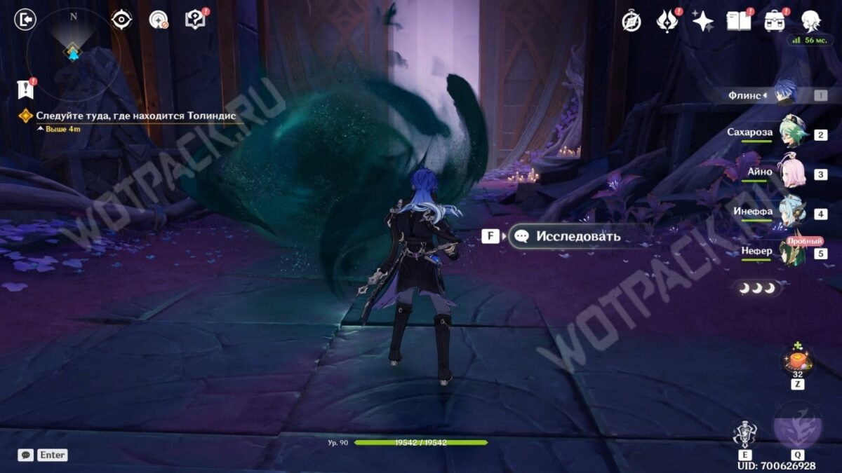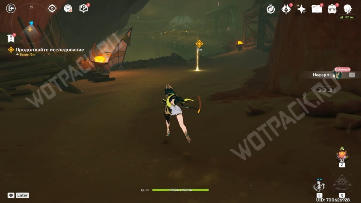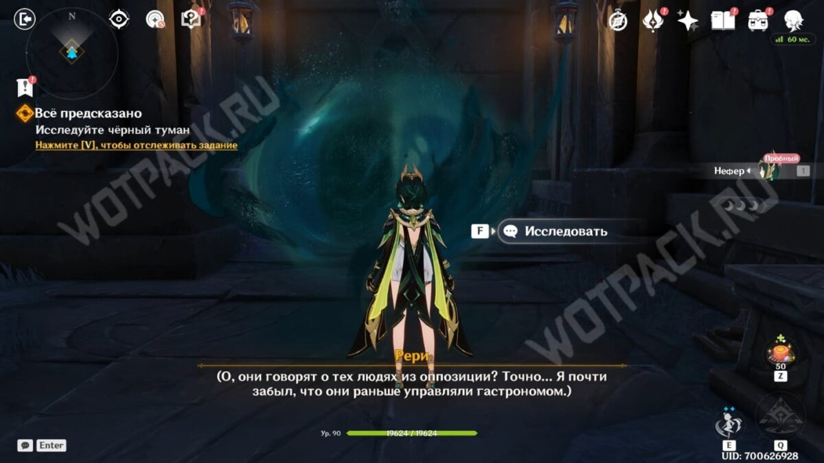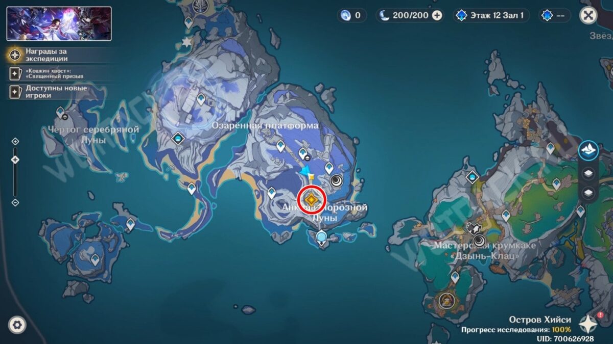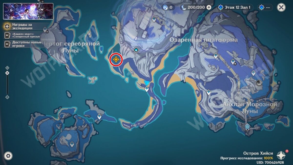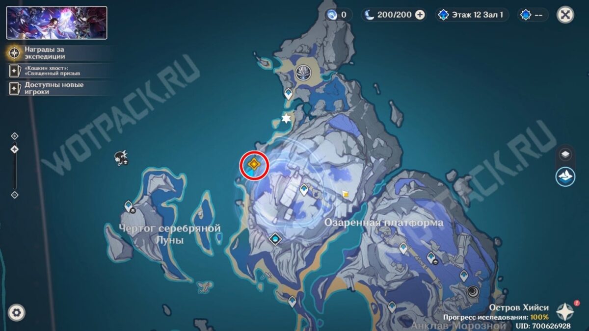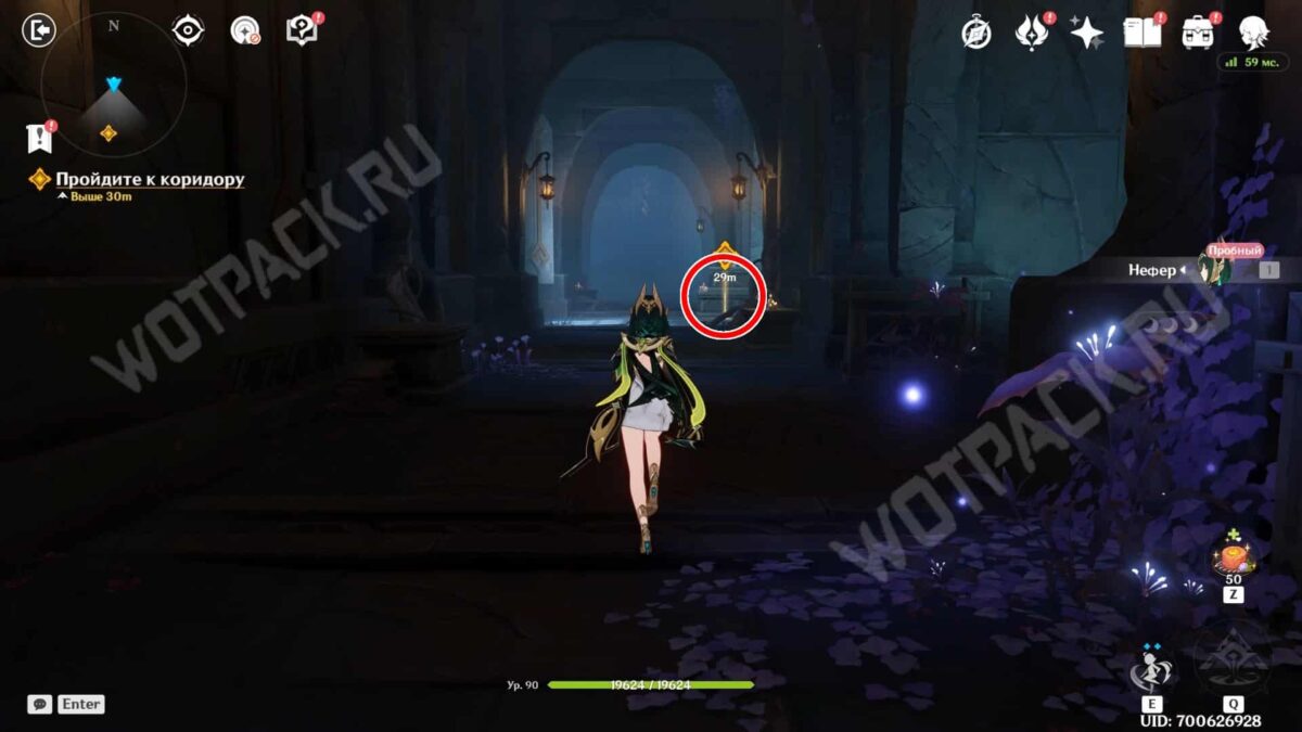 Обсудив действия, дождитесь, пока «Богохульство против смерти» Лунный мститель Рери выберется из шахматной шкатулки. На поле боя окажетесь с отрядом из пяти пробных героев: Нефер, Лаума, Флинс, водный Путешественник и пятый слот займёт Айно, на которую нельзя переключиться. Девочка-изобретатель послужит дополнительной поддержкой и источником Гидро статуса. Её способность можно использовать раз в 20 секунд.