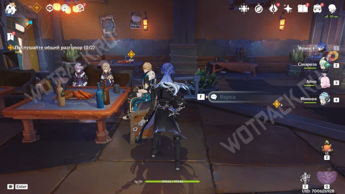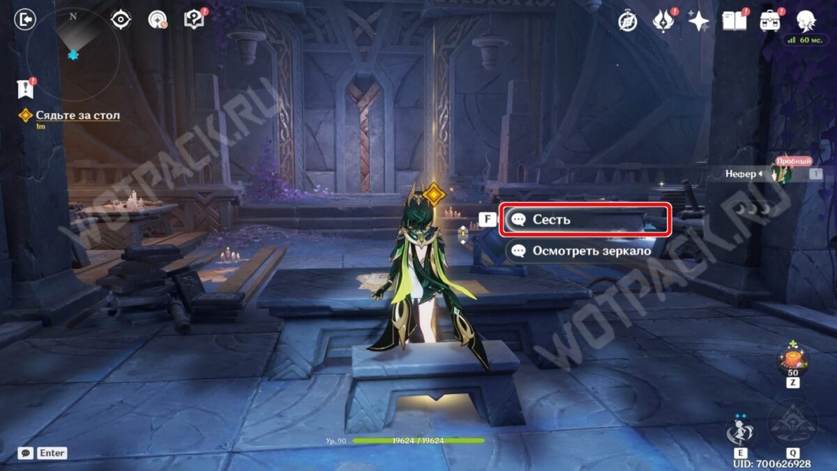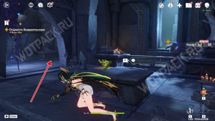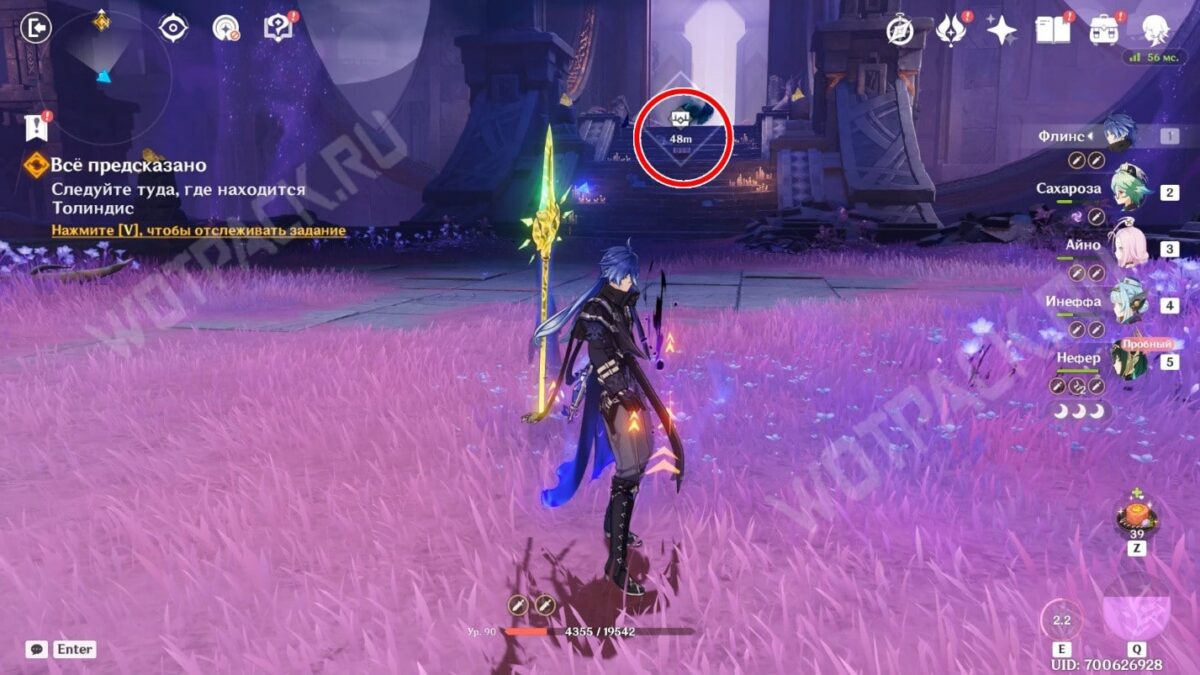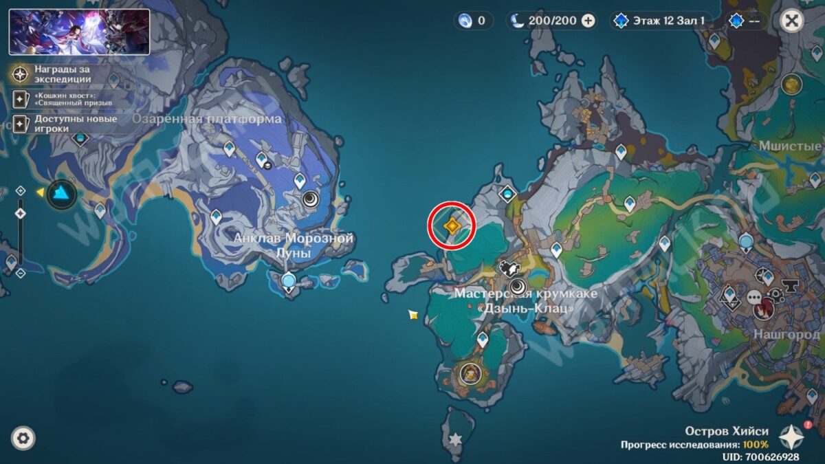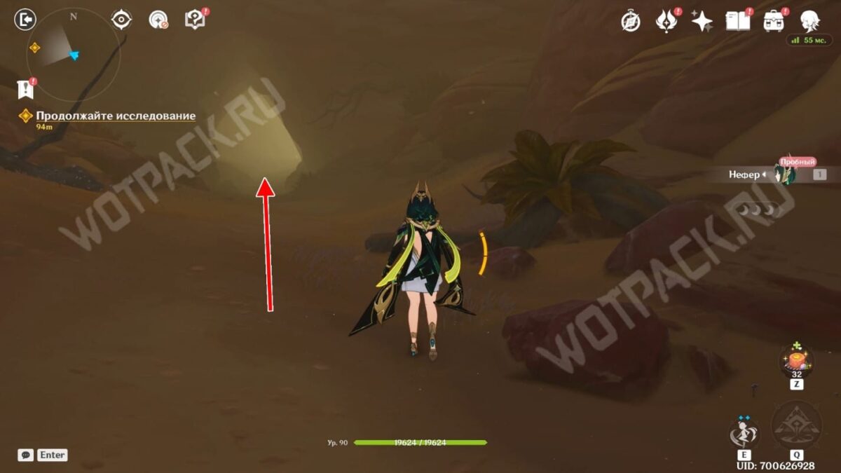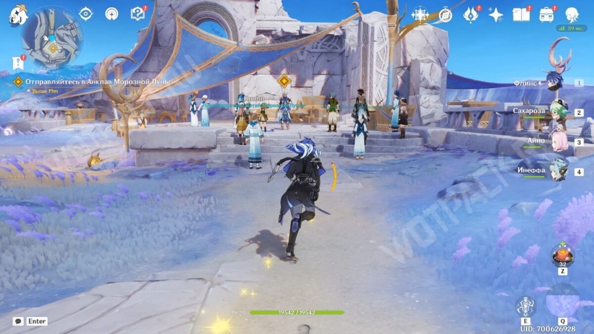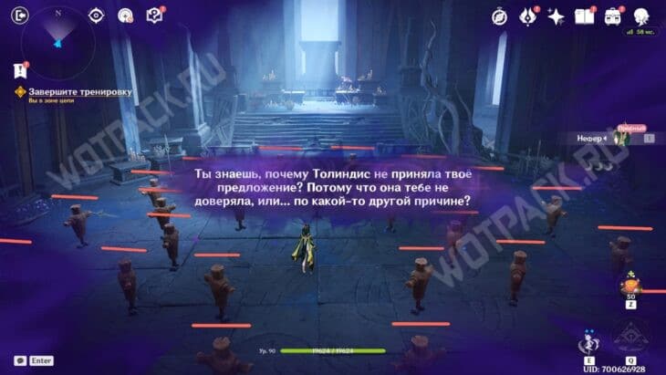 Обсудив действия, дождитесь, пока «Богохульство против смерти» Лунный мститель Рери выберется из шахматной шкатулки. На поле боя окажетесь с отрядом из пяти пробных героев: Нефер, Лаума, Флинс, водный Путешественник и пятый слот займёт Айно, на которую нельзя переключиться. Девочка-изобретатель послужит дополнительной поддержкой и источником Гидро статуса. Её способность можно использовать раз в 20 секунд.