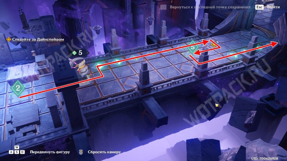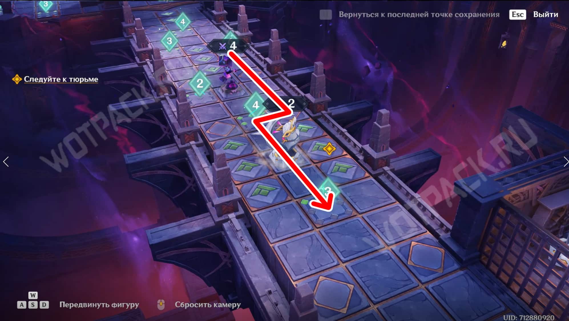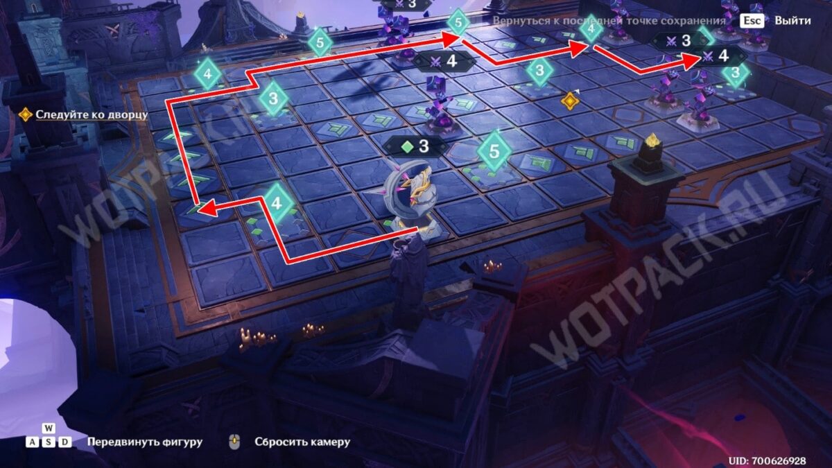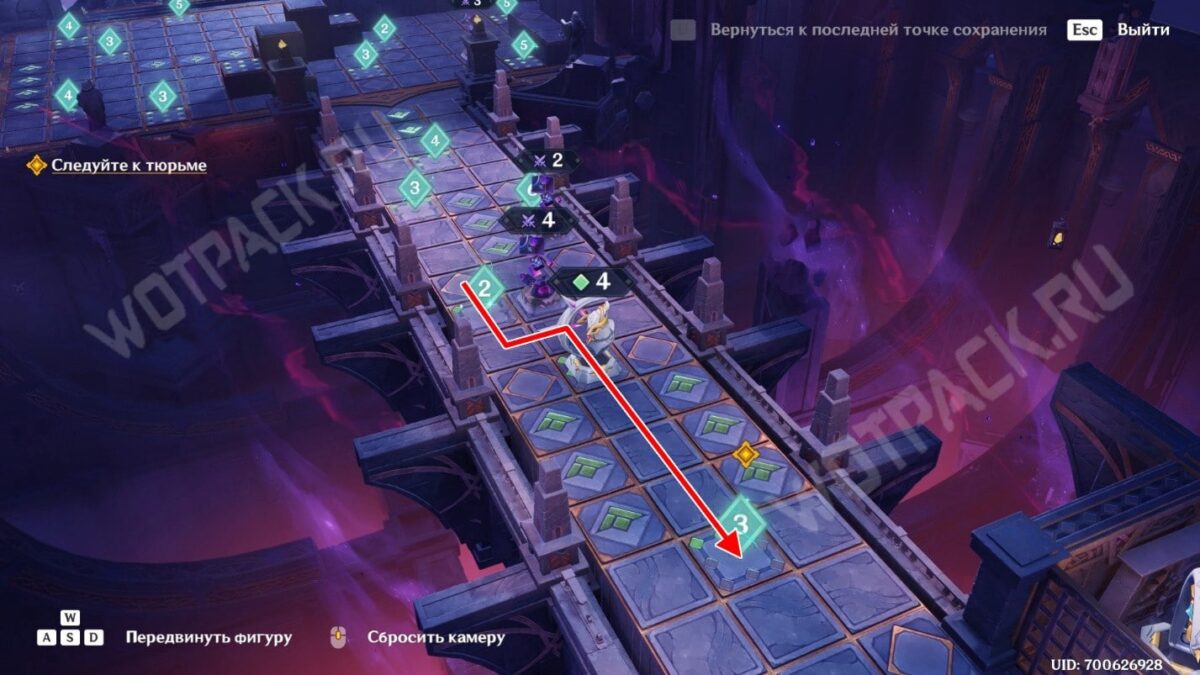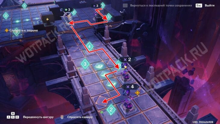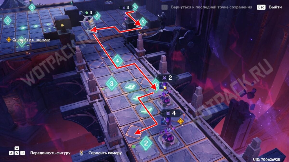 Порядок: 1 вверх, 3 влево, 4 вниз, 2 влево, 1 вниз, 2 вправо, 3 вниз, 2 влево (W-A-A-A-S-S-S-S-A-A-S-D-D-S-S-S-A-A).