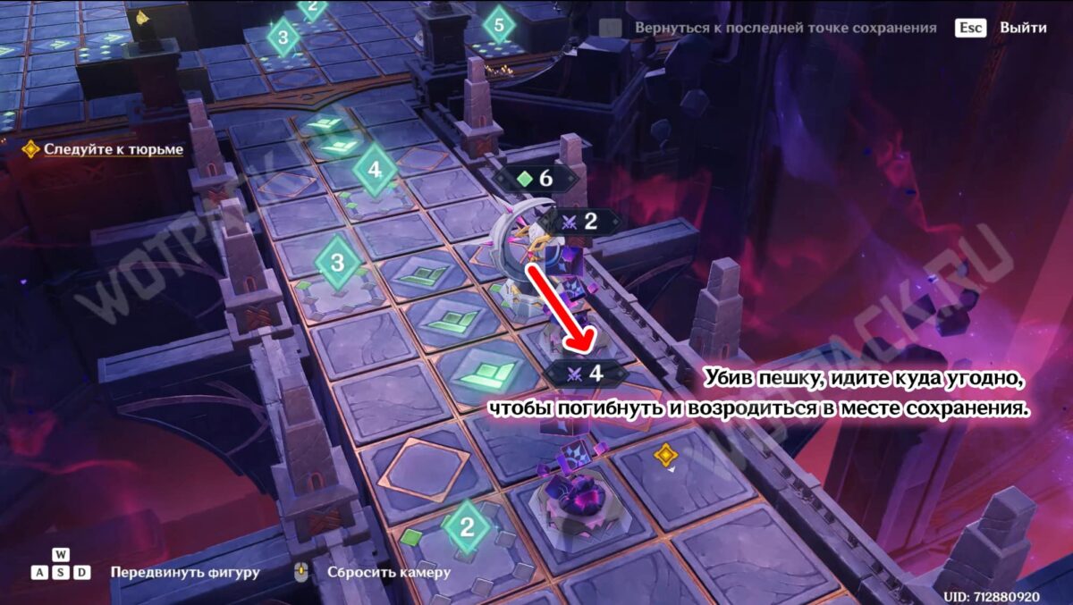 - Ниже сломайте вражескую фигуру силой в 2, чтобы расчистить проход, дальше идите куда угодно и погибните.