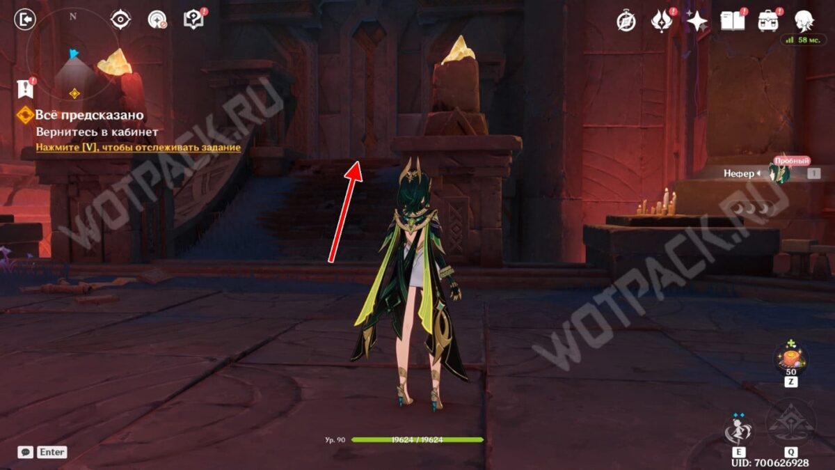 - Выведите в бой главу Куратория тайн Нефер. Прожмите её Е-шку, нанесите три заряженных удара и повторите цикл.