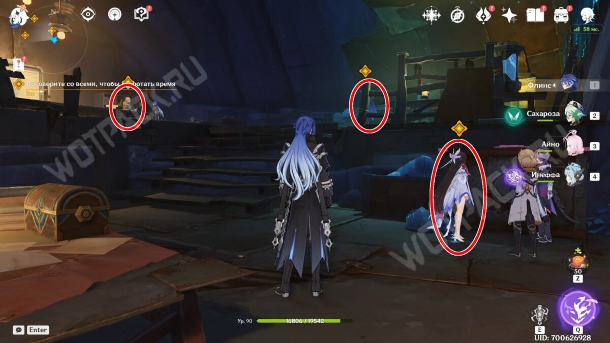Оказавшись в помещении, поговорите со всеми, чтобы скоротать время: по очереди подойдите к Субретке, Дайну, Варке и выслушайте их.