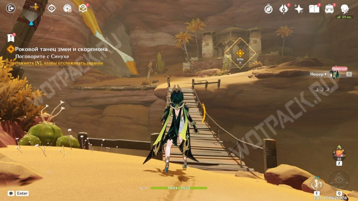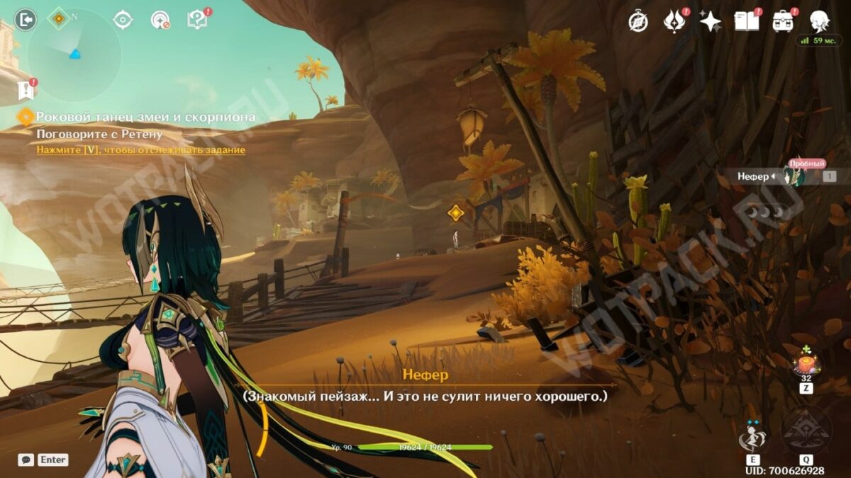 Завершив беседу, развернитесь на север и пробегите по ещё одному мосту. Поговорите с Синухе — он расскажет о новом колодце и о том, что познакомился с людьми из Академии.