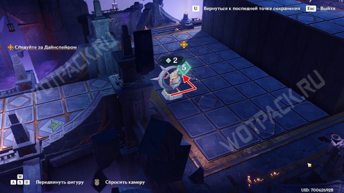 Новая игровая доска ещё более сложная. Проберитесь по ней из точки, где стоите, к охраняемым воротам справа. В этот раз, чтобы не сражаться с врагами, нужно обойти всю комнату.