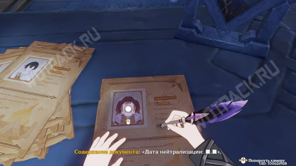 Сядьте за стол и начните просматривать документы об устранённых последователях и потомках Алой Луны. Нажимайте «ЛКМ», чтобы перечеркнуть фото, а затем, с помощью той же кнопки, берите из стопки слева следующую бумагу.