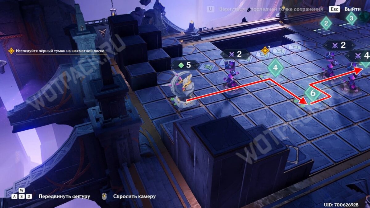 Собрав всю важную информацию о прошлом, сможете приступить к реконструкции событий, используя особые шахматные фигуры. Запустится мини-игра, в которой предлагается управлять фигуркой Лунного мстителя.