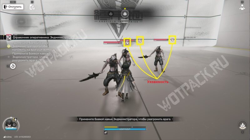 - В начале боя используйте командные способности, чтобы накопить заряды УЯЗ. Если в группе есть персонажи, вызывающие прорыв (например, Пограничник), обязательно активируйте это физ. состояние для наложения восприимчивости.