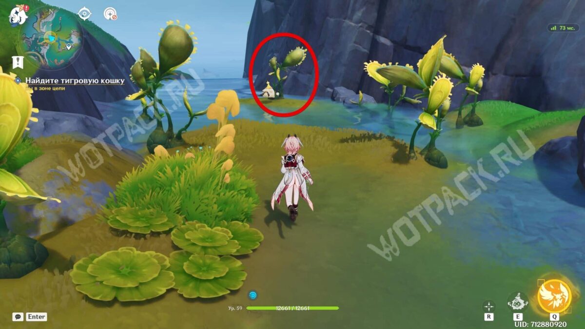 За третьей целью направляйтесь в Мшистые пустоши на острове Лемпо. Поговорив с охотниками за сокровищами, найдите тигровую кошку в дальнем Двулистнике на маленьком островке.