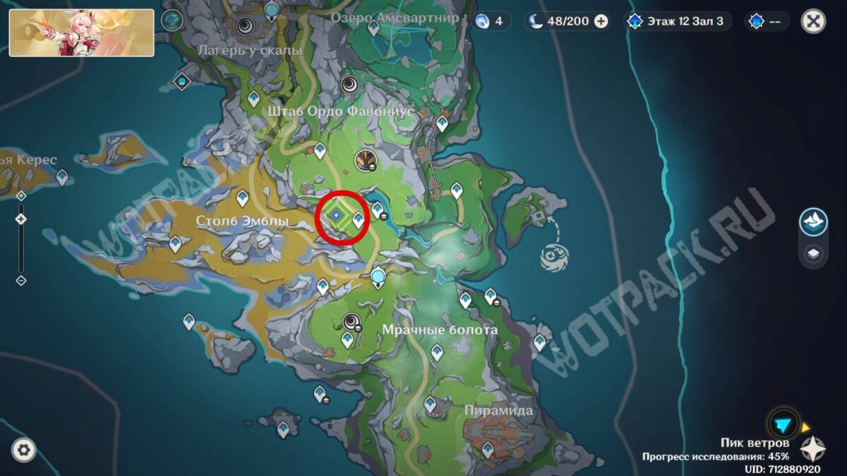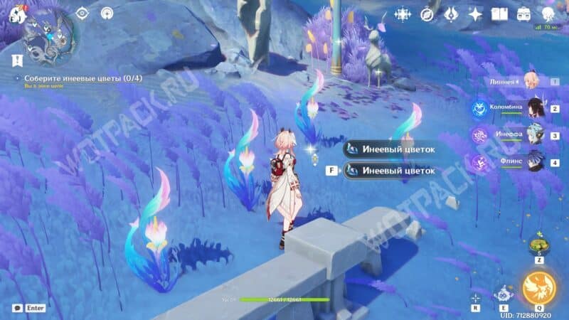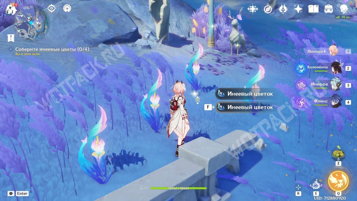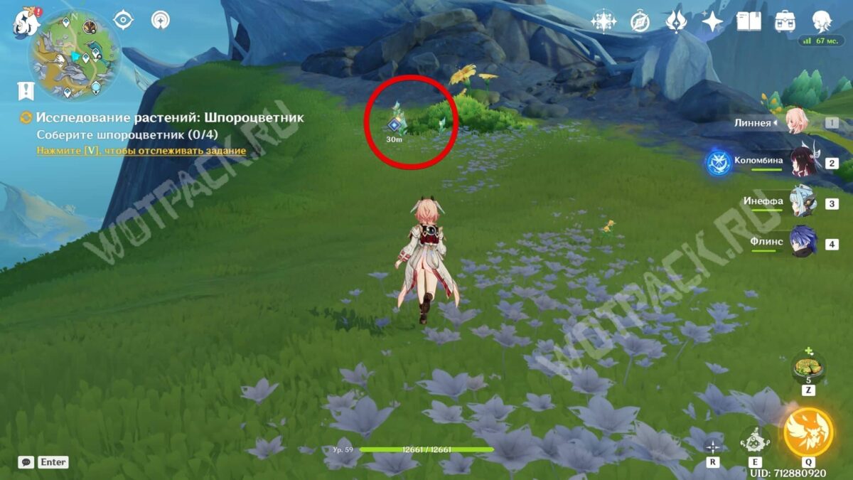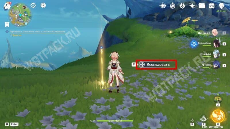 Когда доберётесь до первой точки на Равнине Волногона, используйте действие «Исследовать» и соберите четыре Шпороцветника в указанной области.