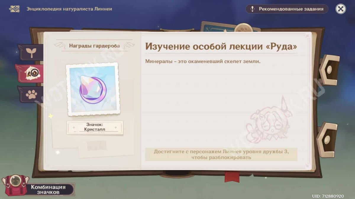 Уроки по минералам открываются с 3 уровня дружбы девушки-альва. В них нужно собрать: