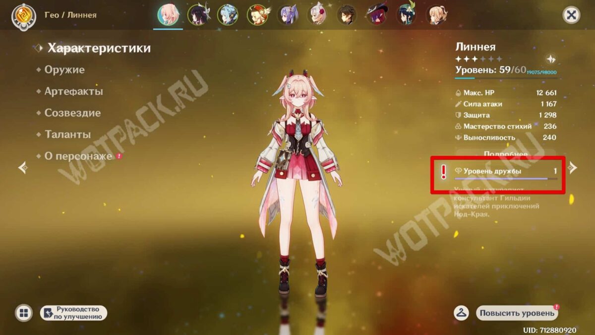 Перейдите в раздел с персонажами и нажмите на восклицательный знак возле показателя уровня дружбы Линнеи. Альбом появится в категории инструментов в инвентаре.