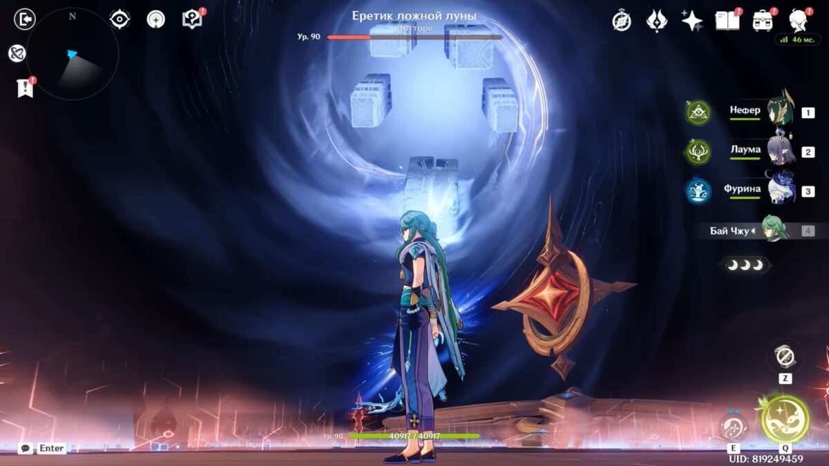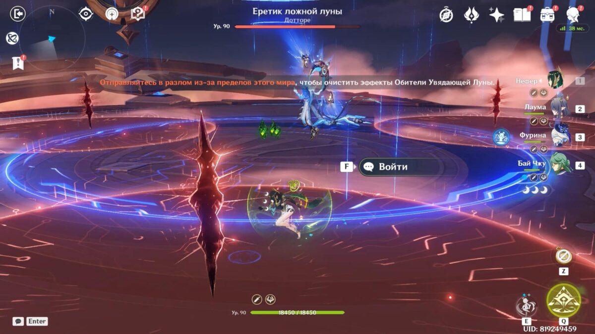 Чтобы очистить эффекты Обители Увядающей Луны, которые выражаются в виде багровых кругов, подбегите к трещине в пространстве и кликните на «Войти». Игнорировать этот шаг не стоит, в противном случае из-за опасной обстановки на поле высока вероятность потерять одного или нескольких персонажей.