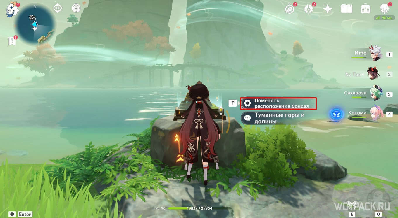 Для начала отправляйтесь на островок с бонсаем. Сделать это можно при помощи метки с изображением кленового листа. Подойдите к бонсаю и нажмите «Поменять расположение бонсая». Левую сторону рокария измените на Светящийся камень, а правую на Безмятежный камень. После этого подтвердите все изменения.