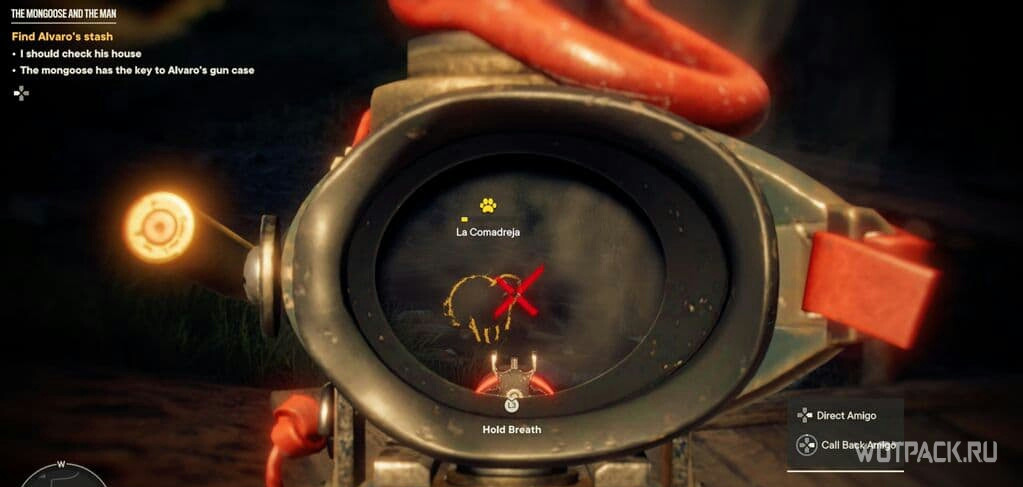 Тайник обнаружится в доме, но – вот незадача – будет заперт на ключ. Придется направиться к сараю, ключ от которого будет прямо возле двери. Но в сарае ждет сюрприз – тот самый мангуст.