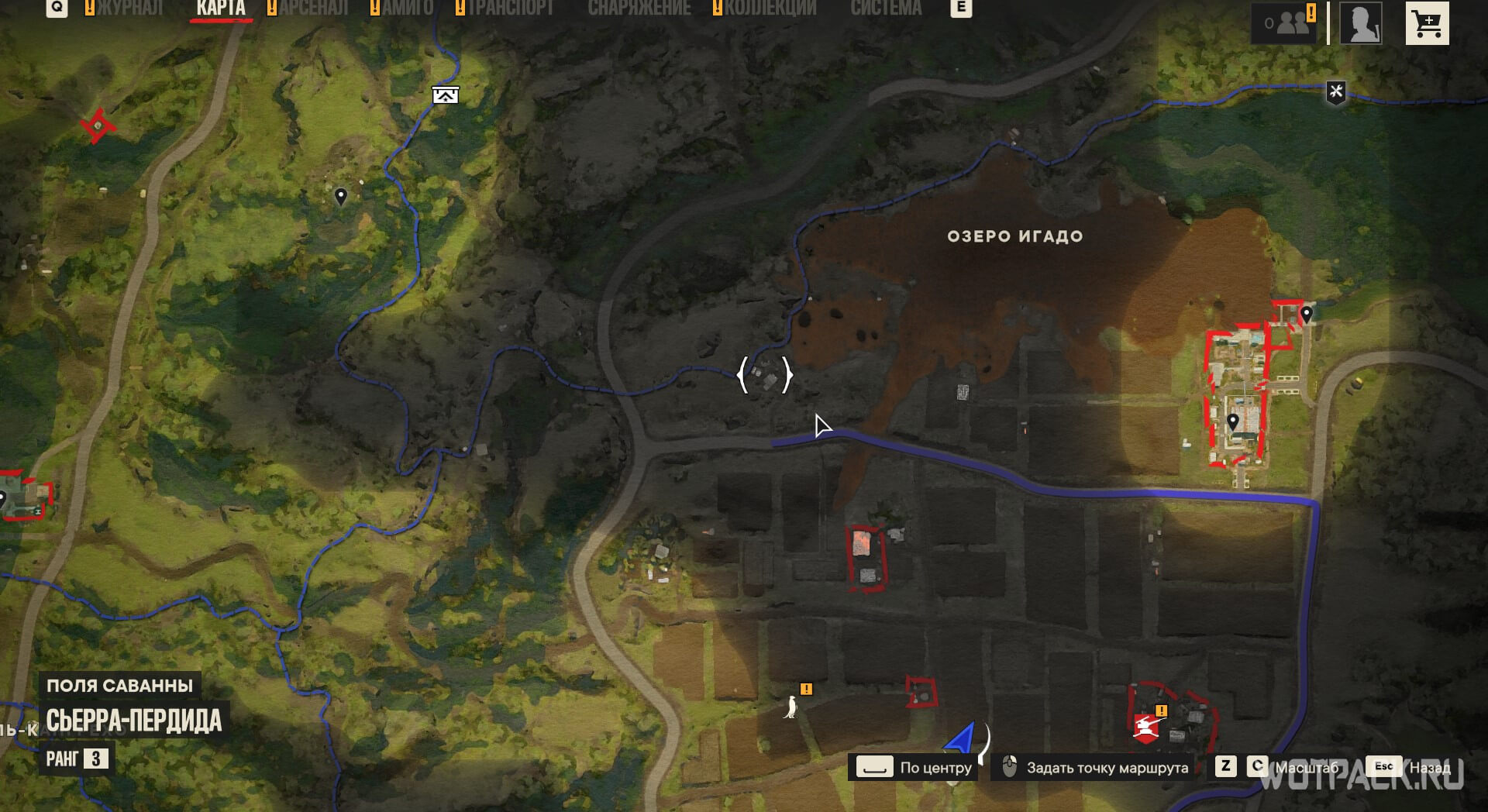 Отправьтесь в место, указанное на скриншоте, к северо-востоку от Полей саванны.
