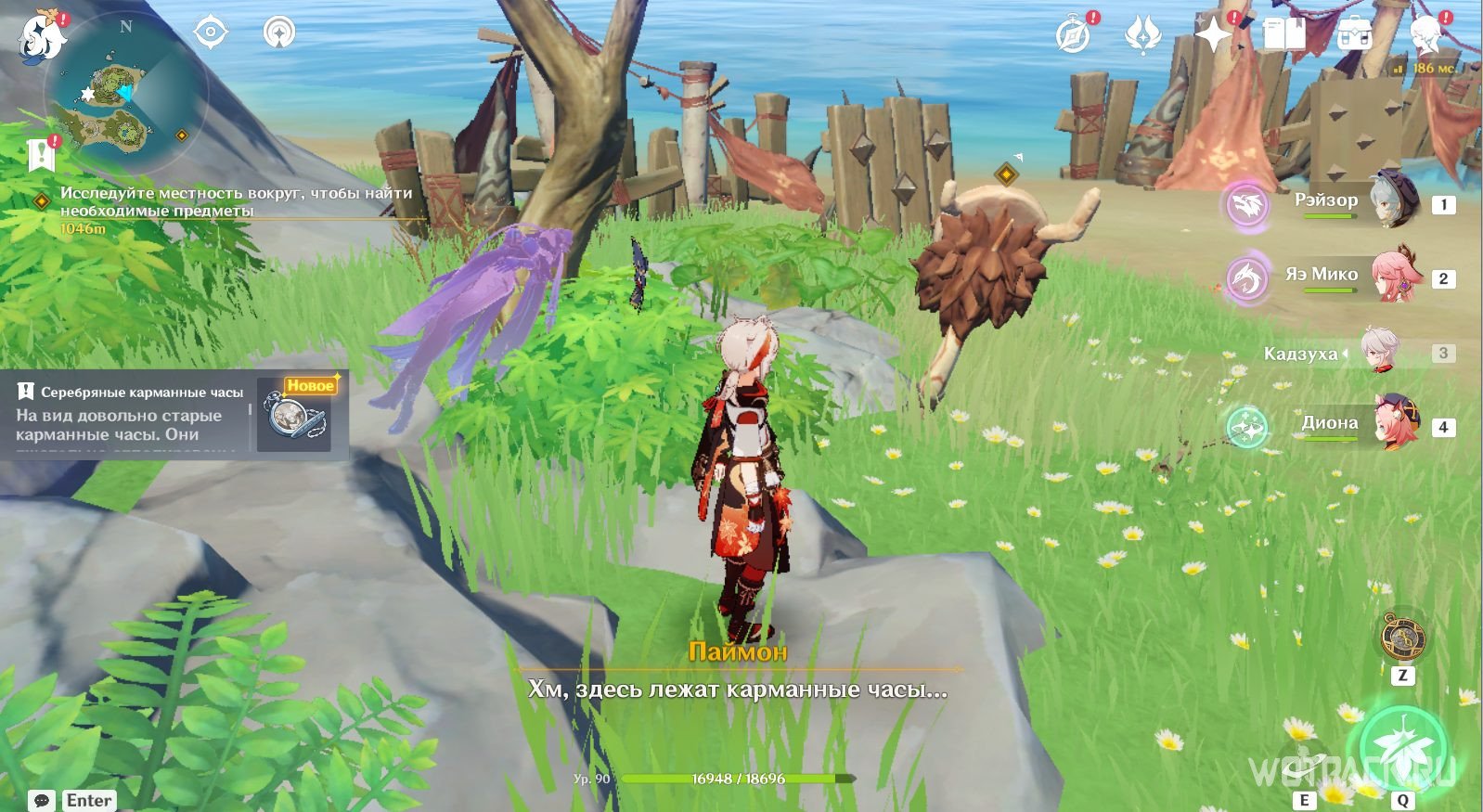 В лагере хиличурлов в восточной части Изломанного острова можно обнаружить карманные часы и раковину воспоминаний.
