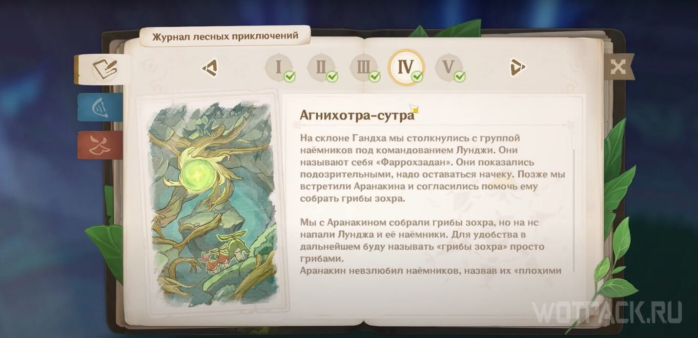 После завершения всех квестов цепочки Агнихотра-сутра еще не удастся закрыть главу до конца, а при нажатии кнопки «Перейти» в Араньяке говорится, что нужно готовиться к празднику. После его проведения книга выдаст еще одну подсказку: вы можете встретить их вновь, если вернетесь в места ваших совместных приключений. Если на данном этапе возникли трудности, ознакомьтесь с данной статьей, где мы подробно расскажем, как завершить цепочку и получить галочку для Агнихотра-сутра в Genshin Impact, а также разблокировать скрытое достижение Сумеру «Ореховое дерево посреди сада». Финальная часть состоит из 4 небольших квестов: