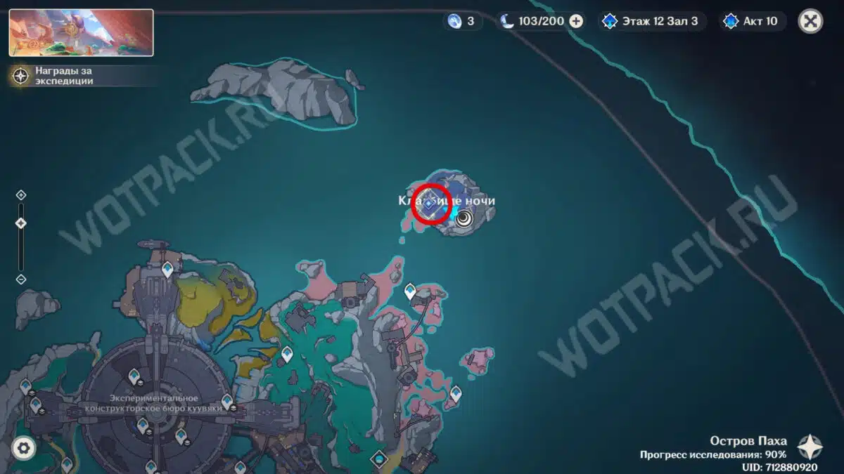 Последний объект брошен на отдалённом пустом острове на севере. Переместитесь к месту встречи с Кириллом и в форме куухенки пролетите по Лунному пути до другого берега. Вместо этого можно, например, воспользоваться помощью Гидро Архонта Фурины или некоторых Крио персонажей.